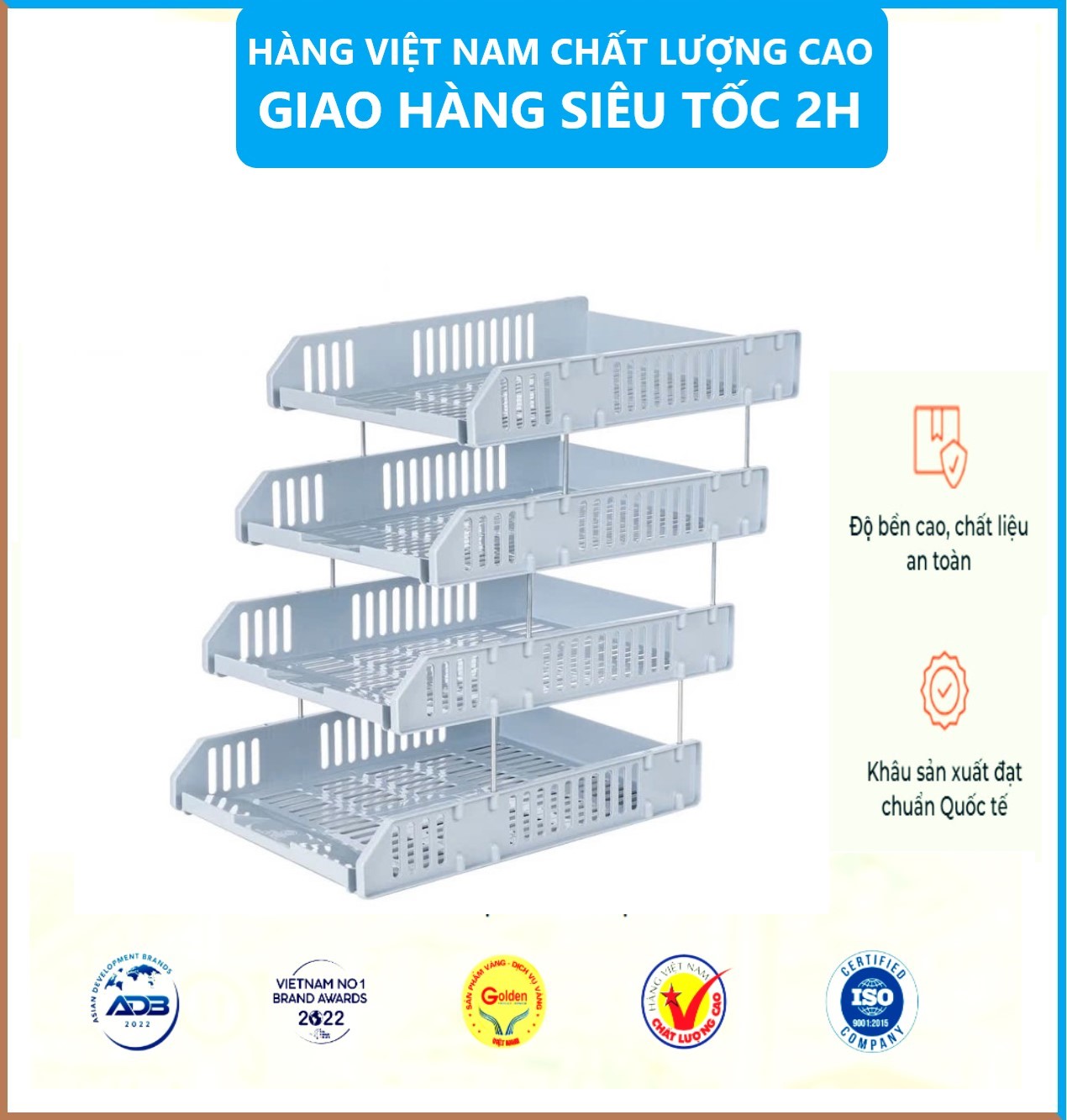 Khay đựng nhiều ngăn giúp phân chia các loại sách vở, tài liệu một cách gọn gàng, ngăn nắp.