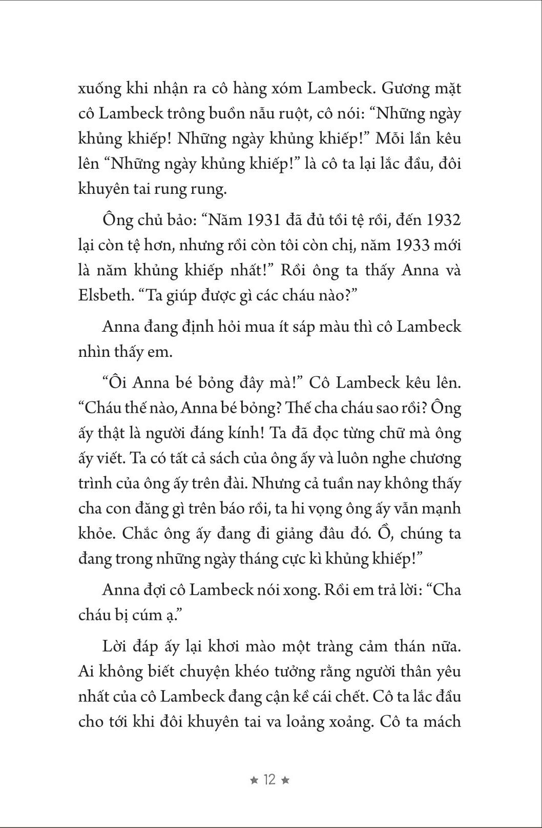 Đây là câu chuyện đã xảy đến với Anna, ở nước Đức, năm 1933. Đất nước của em bắt đầu thay đổi. Ngay khi em còn chưa kịp nhận ra, tình thế đã trở nên nguy hiểm với một cộng đồng người. Và em ngỡ ngàng khi biết cha m.ình thuộc về cộng đồng ấy.