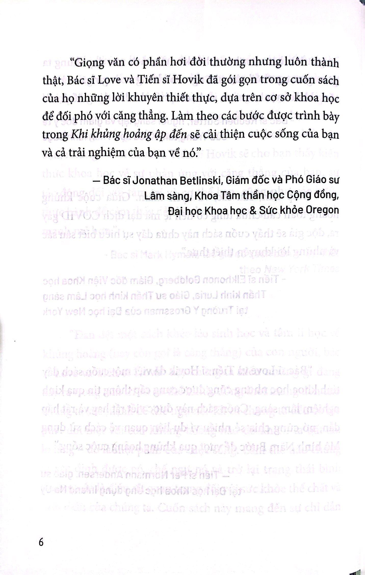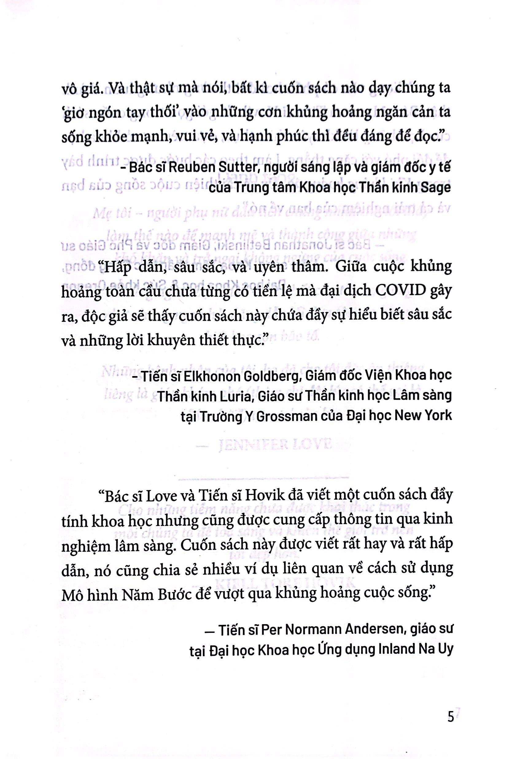"Khi khủng hoảng ập đến" là cuốn cẩm nang mà bất kì ai đang đối mặt với biến động cảm xúc nghiêm trọng đều có thể sử dụng để xác định và làm dịu lại tập hợp lạ lùng những yếu tố gây căng thẳng đang bủa vây họ. Cuốn sách này chứa đựng những ý tưởng thiết thực và nó cũng cho thấy ứng dụng của chúng trong thực tế, với các nghiên cứu điển hình đầy mạnh mẽ được tập hợp lại một cách hữu ích theo các chủ đề là mất mát, chấn thương, khủng hoảng gia đình, bệnh mạn tính và khủng hoảng hiện sinh. Mô hình 05 bước đã giúp ích cho nhiều người đang phải khổ sở vì những cơn khủng hoảng tồi tệ nhất trong cuộc sống mà người ta có thể tưởng tượng được, chúng có thể hữu ích cới cả bạn nữa.