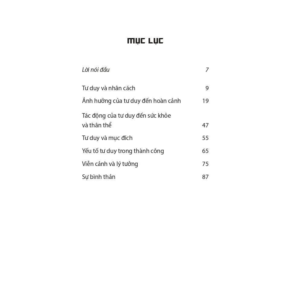 Cuốn sách khai mở cách mà tư duy định hình tính cách, hành vi, hoàn cảnh – và cuối cùng là số phận. Bằng việc làm chủ tâm trí, bạn nắm trong tay chiếc chìa khóa để: