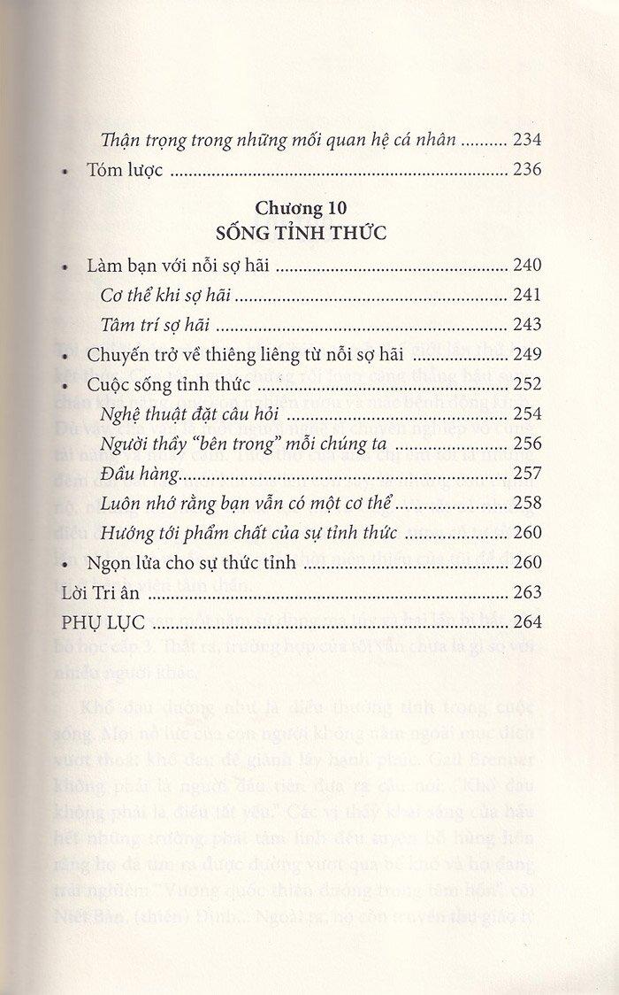 - Nhiều người hay tự hỏi: “Làm sao m.ình có được cuộc sống tốt nhất khi đời luôn đầy rẫy những biến cố khôn lường?” Qua cuốn sách của Gail Brenner, những công cụ hữu ích sẽ được trao cho bạn nhằm giúp bạn thoát khỏi bóng ma quá khứ cũng như vượt qua các rào cản trong hiện tại. Tác giả sẽ cùng bạn học cách an tâm: bạn không cần phải thay đổi người khác, bạn chỉ cần thay đổi góc nhìn về cuộc đời, thay đổi niềm tin của bạn về bản thân, và rồi bạn sẽ có thể tận hưởng cuộc sống một cách trọn vẹn hơn. (Nance Guilmartin, tác giả của Những cuộc chuyện trò chữa lành và Sức mạnh của điểm dừng)