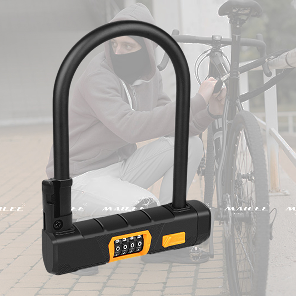 Khóa Chữ U Chống Trộm Cho Xe Máy/ Xe Điện/ Xe Đạp U-0511 Hợp Kim Thép Vỏ PVC - Khóa Mã 4 Số + Cáp Thép 1m2 (tùy chọn) - Mai Lee - Sản phẩm