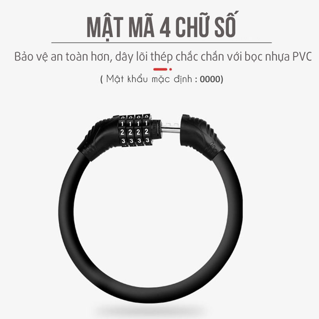 Khóa Số Xe Đạp 4 Số Mật Mã Vỏ PVC Bọc Lõi Thép (dạng tròn cứng) (mật khẩu mặc định 0000)Mai Lee #mtb