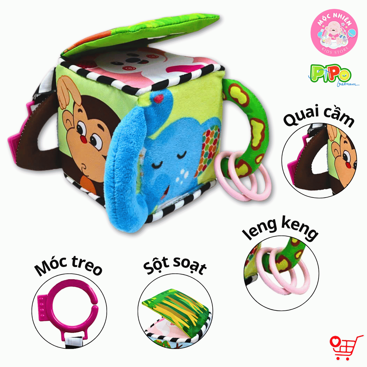 - Hãy tương tác cùng bé nếu ba mẹ có thời gian. Hãy chỉ cho bé tên các con vật, màu sắc các hình, và các bộ phận của con vật. Việc tương tác như vậy sẽ tăng khả năng ngôn ngữ và giao tiếp của con. HƯỚNG DẪN BẢO QUẢN: • Sản phẩm thích hợp giặt bằng tay, trong trường hợp giặt máy cần sử dụng túi giặt. • Giặt sản phẩm ở nhiệt độ thường, không quá 30°C. • Không sử dụng chất tẩy, xà phòng có chứa chất tẩy trắng sẽ làm ảnh hưởng màu sắc của sản phẩm. • Không giặt khô. Không được là hoặc ủi sản phẩm. Không phơi trực tiếp dưới ánh nắng mặt trời. • Có thể dùng tiệt trùng trong máy tiệt trùng ở chế độ không gia nhiệt. • Giặt đồ chơi vải riêng biệt để tránh rủi ro màu các đồ khác lem, dính vào đồ chơi. • Bảo quản nơi sạch sẽ, thoáng mát tránh nơi nhiệt độ cao, lửa,... THÔNG TIN THƯƠNG HIỆU PIPOVIETNAM: • PiPoVietnam là thương hiệu của Công ty TNHH Mùng 1 tháng 6. Được thành lập từ năm 2016. • PiPoVietnam là nhãn hiệu đồ chơi vải đầu tiên và hàng đầu tại Việt Nam. PiPo có một đội ngũ THIẾT KẾ, NGHIÊN CỨU & SẢN XUẤT sản phẩm với nhiều năm kinh nghiệm luôn tâm niệm sáng tạo ra các loại đồ chơi vải mang phong cách Việt Nam dành riêng cho trẻ em Việt Nam. Bên cạnh đó PiPo luôn cố gắng tối ưu hóa sản xuất để đưa giá thành hợp lý nhất đến tay các khách hàng nhí yêu quý. • Sản phẩm của PiPo luôn tuân thủ các yêu cầu khắt khe trong sản xuất, đạt các tiêu chuẩn đồ chơi an toàn Việt Nam 2019. Công bố sản phẩm theo số hợp quy 2357/Vietcert. Đồ chơi vải PiPoVietnam: SÁNG TẠO - AN TOÀN – TIẾT KIỆM – DỄ VỆ SINH – BẢO VỆ MÔI TRƯỜNG