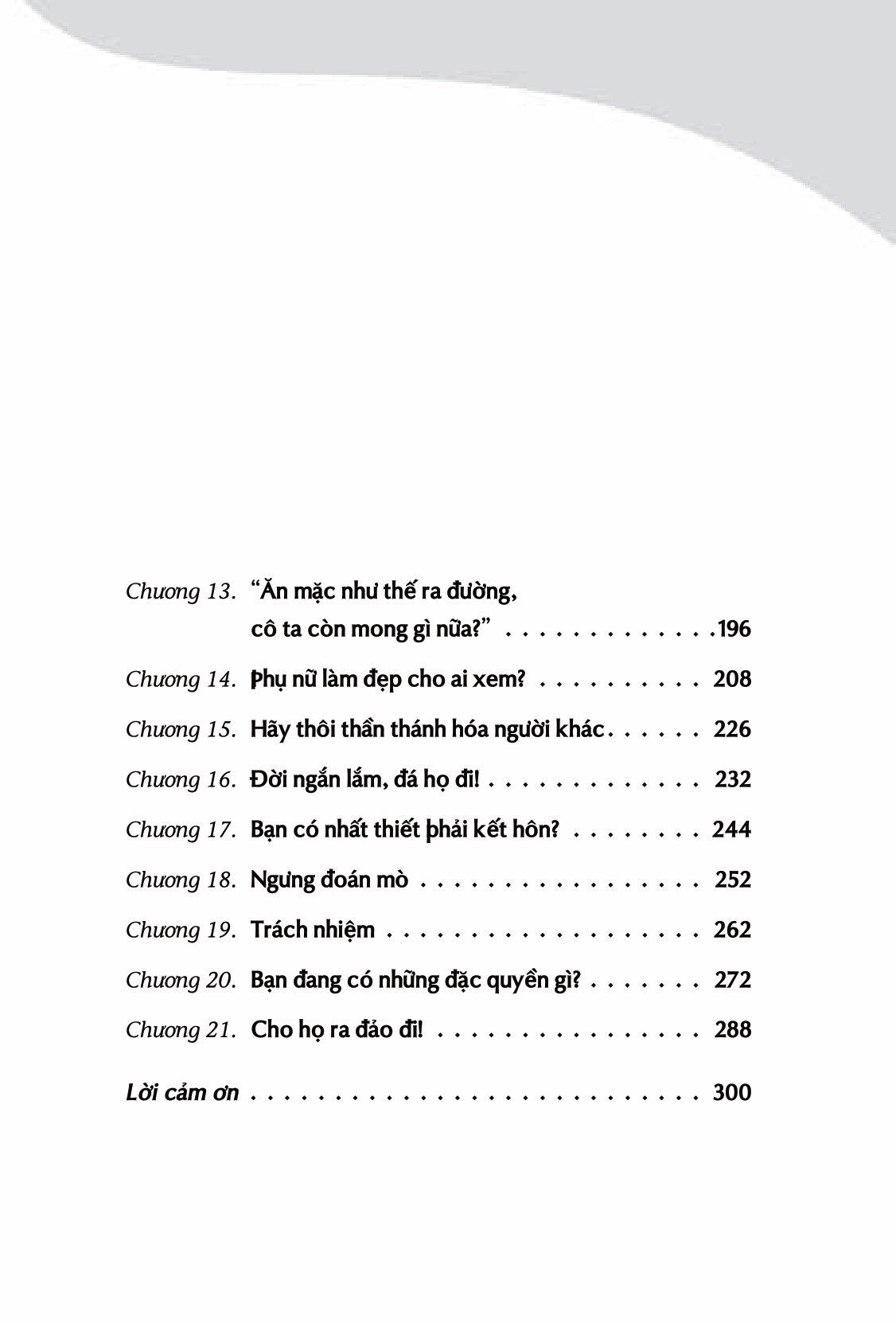 Sẽ thật tuyệt nếu phụ nữ cảm thấy họ không cần dùng đến những phương pháp làm đẹp quá khắc nghiệt để cơ thể “đủ sức thu hút”, và có thể để mặt mộc đi làm mà không bị nhận xét rằng “trông mặt tối tối”. Nhưng người ta vẫn luôn trông đợi rằng phụ nữ thì phải xinh đẹp và đáng them muốn, và mức độ trông đợi sẽ khác nhau tùy thuộc vào vị trí mà người phụ nữ ấy đã nắm giữ trong hệ thống phân cấp độ hấp dẫn mà xã hội tạo ra. Chúng ta không thể ép người khác cảm thấy xấu hổ vì đã sử dụng một vài công cụ để làm đẹp, nhất là khi họ chỉ muốn cuộc sống của m.ình dễ dàng hơn và nhận được sự tôn trọng cơ bản dành cho con người, cho dù đó là cọ trang điểm hay dao cạo. Tại sao bạn lại muốn họ phải chịu khổ sở thêm nữa dưới cái lốt “tinh thần nữ quyền ưu việt”, khi họ chỉ đang cố gắng để tồn tại? Chúng ta không thể bắt người khác phải xấu hổ vì đã làm đúng theo những gì xã hội đã luôn trông đợi họ làm để được nhìn thấy và lắng nghe trong cái thế giới hỗn độn này.