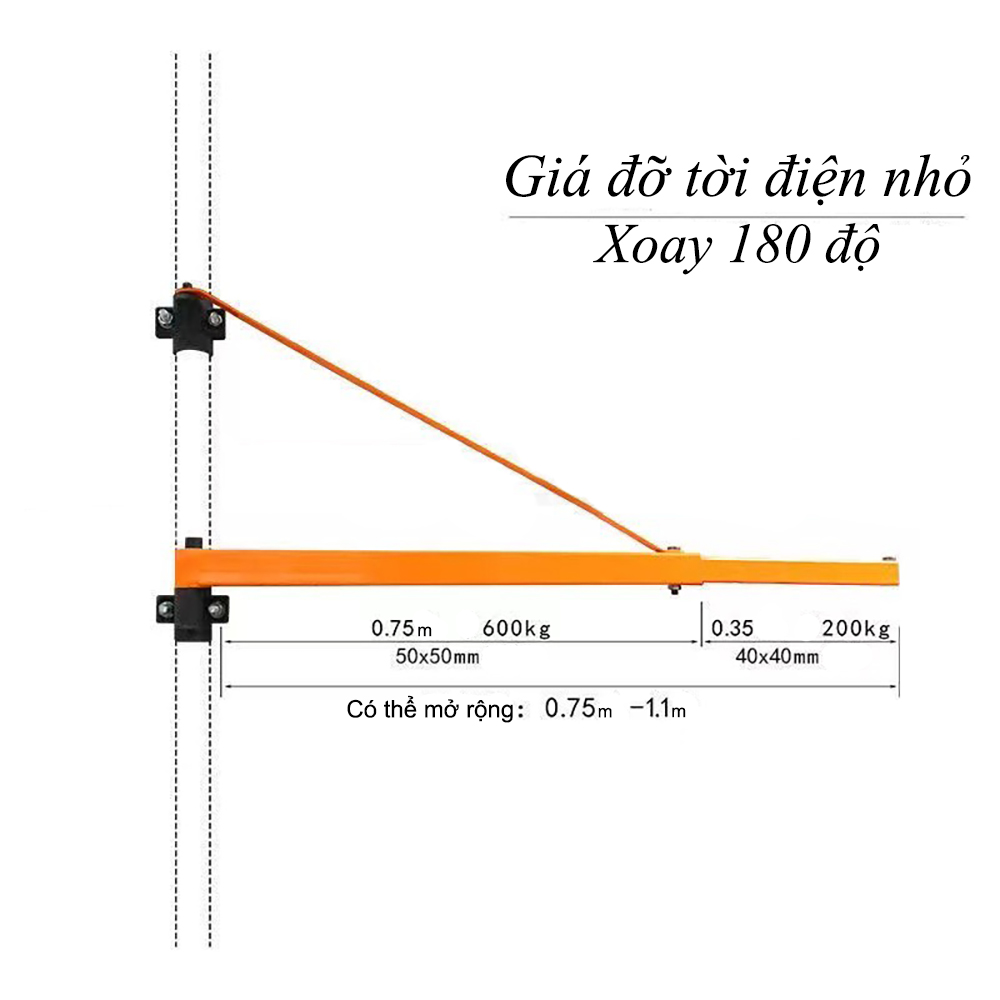 Khung treo tời điện gia đình 200kg – 600kg chịu tải lớn dùng để bắt tời lên tường bê tông, nhà xưởng, công trình thi công
