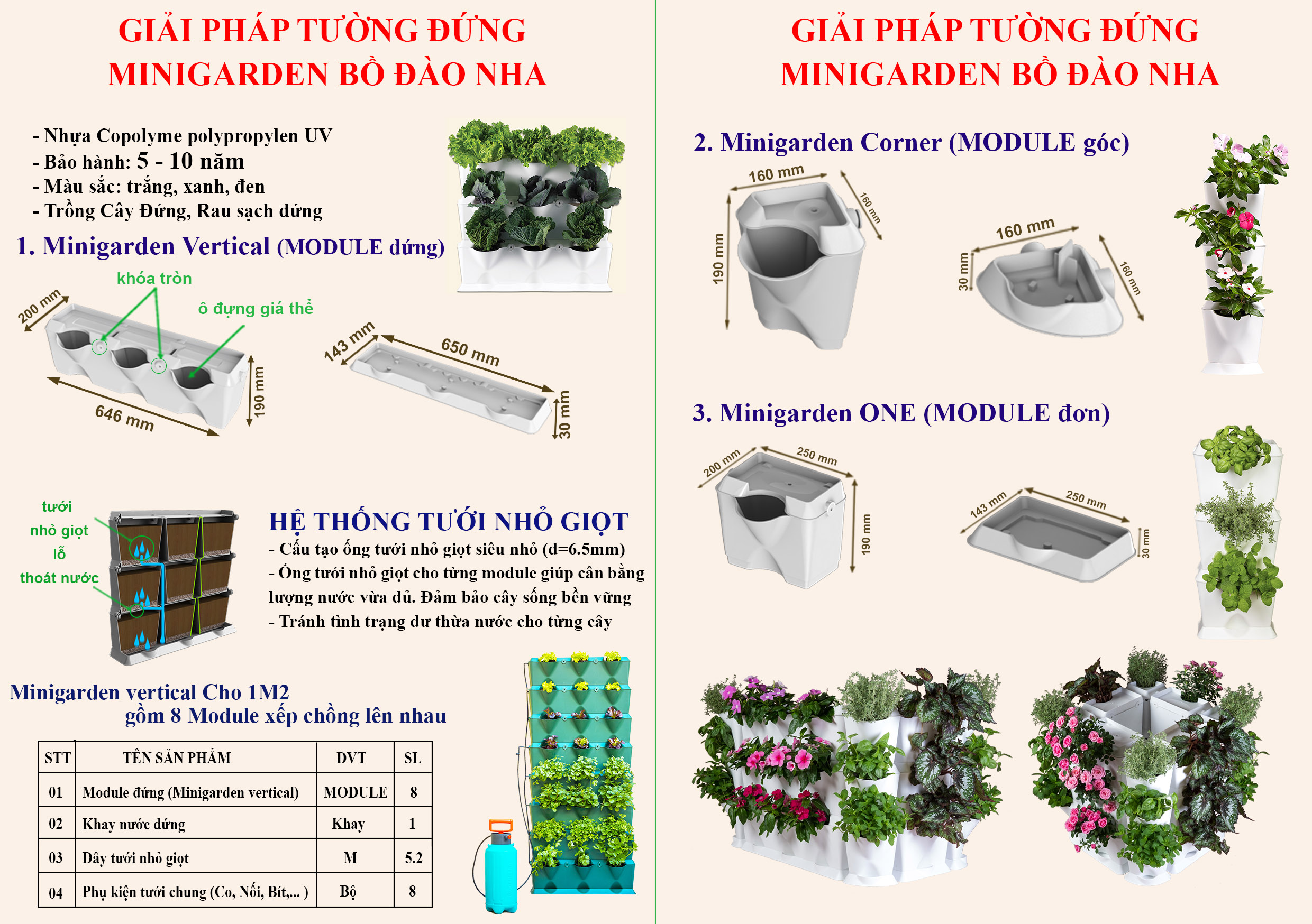 KHUNG TRỒNG CÂY ĐỨNG MINIGARDEN VERTICAL (OUTDOOR & INDOOR PLANTS) CHO CÂY TRONG NHÀ, CÂY NGOÀI TRỜI VÀ TRỒNG RAU SẠCH ĐỨNG - Minigarden Vertical nhập khẩu Bồ Đào Nha: Chậu Trồng Cây Đứng ban