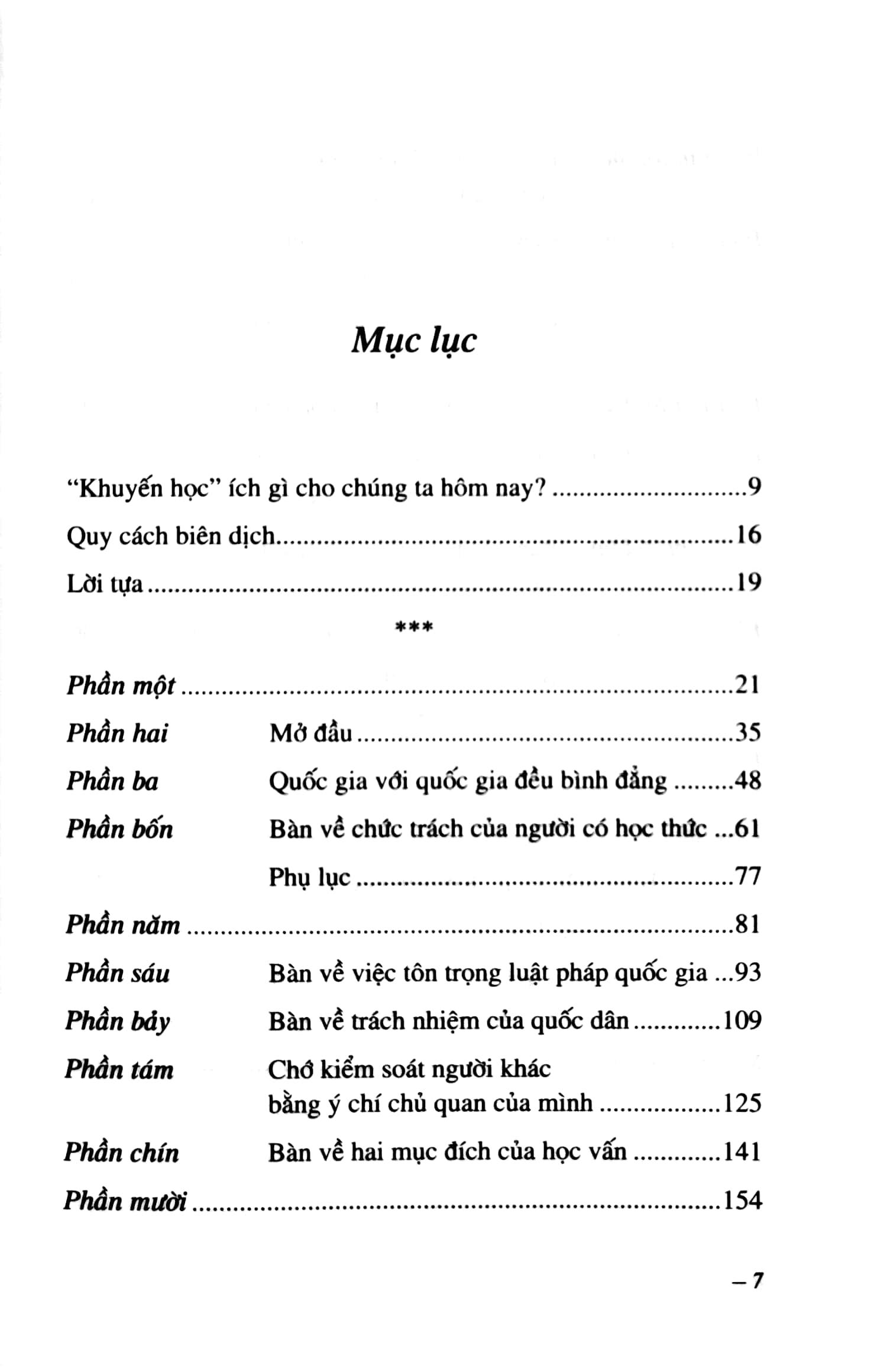 "Tôi rất mong “Khuyến học” với bản dịch mới này sẽ được bạn đọc trong nước đón nhận và phổ biến để người Việt Nam chúng ta vượt qua được trở ngại ngàn năm, biến được ít thành nhiều, biến được đặc thù thành phổ quát, biến tư tưởng tiến bộ thành ý chí, hành động, thực tiễ"