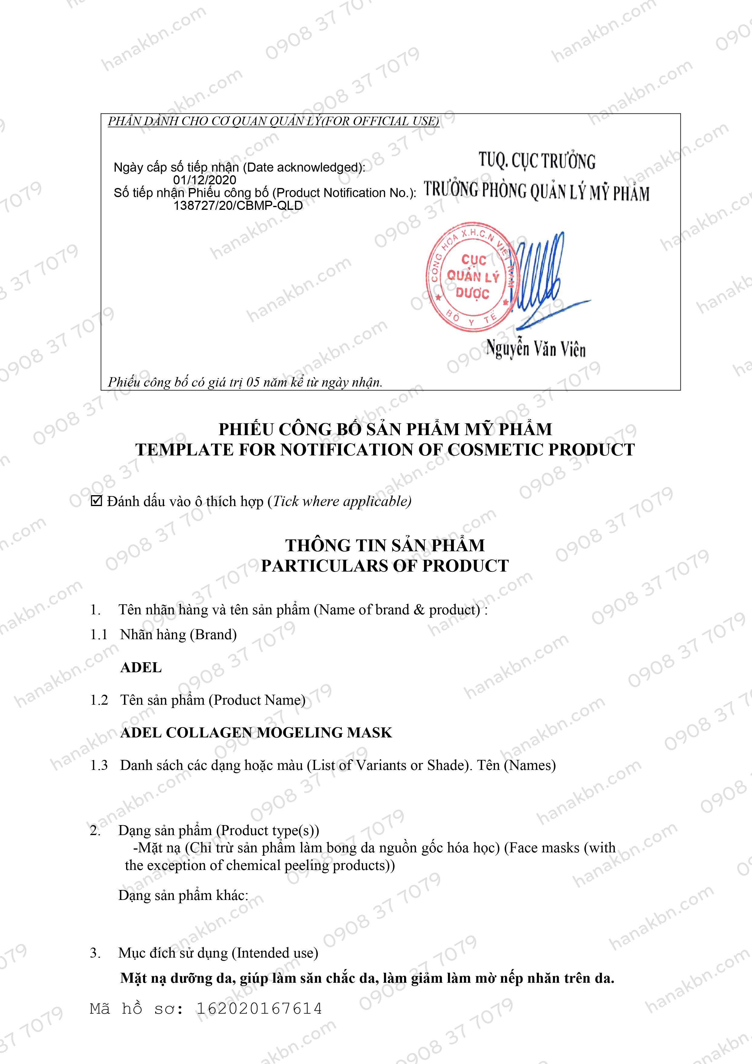 ✨[KHUYẾN MÃI] Bột Mặt Nạ Dẻo Collagen Chống Lão Hóa Nâng Cơ Săn Chắc ADEL Hàn Quốc 1kg
