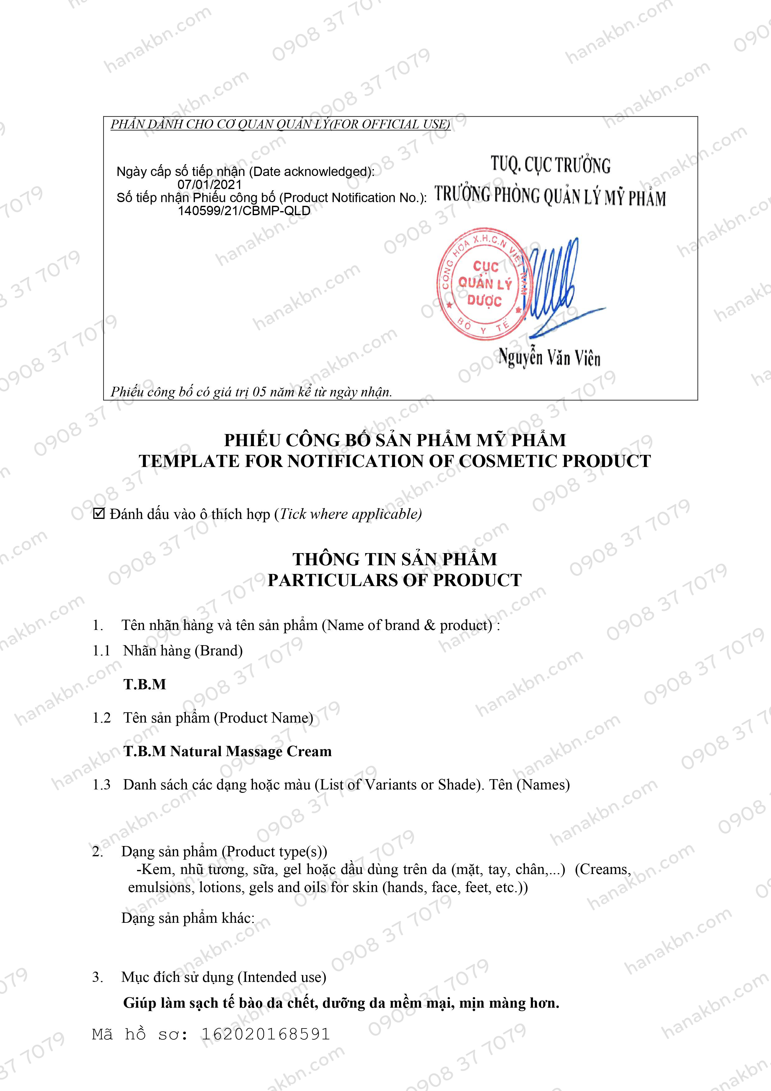 Kem Massage thiên nhiên NATURAL MASSAGE CREAM TBM là dòng kem massage chuyên dùng cho mặt và cơ thể giúp dưỡng ẩm và mang lại cảm giác mềm mịn khi đang massage.