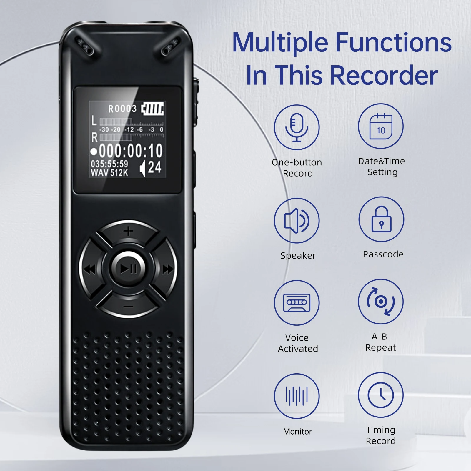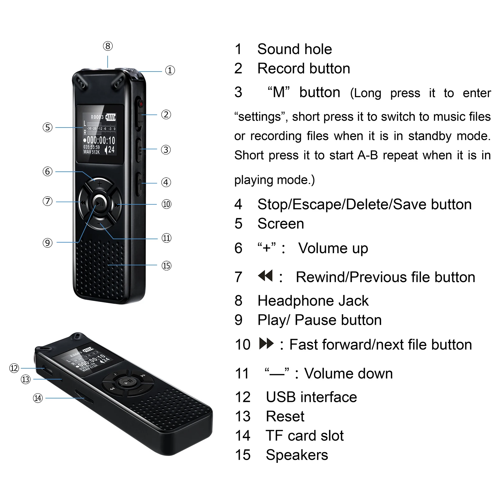 - Chất lượng âm thanh đỉnh của chóp: Micrô giảm tiếng ồn tích hợp cho chất lượng ghi âm cực nét, định dạng WAV hoặc MP3 tùy chọn, lên đến 1536kbps (WAV) - nghe rõ từng hơi thở, thầm thì!