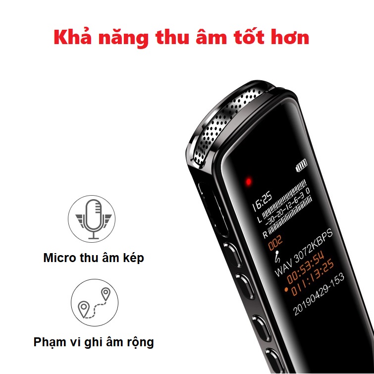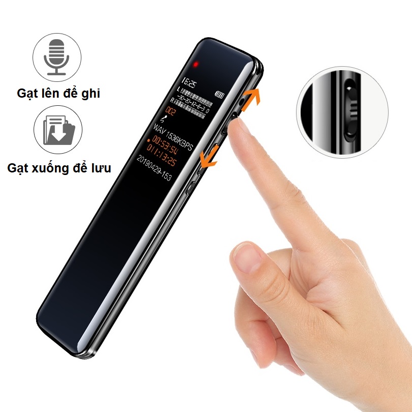 Máy ghi âm kỹ thuật số đơn giản đầy phong cách này có thể được mang đi bất cứ đâu để ghi lại âm thanh trong các bài giảng, cuộc họp, cuộc trò chuyện và