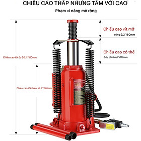 - Kích con đội thủy lực 12 tấn dùng hơi là thiết bị chuyên dụng cho các công việc nâng hạ xe ô tô, xe tải, máy móc nặng... Sử dụng cơ chế thủy lực kết hợp khí nén, sản phẩm mang đến khả năng nâng mạnh mẽ, vận hành đơn giản và tiết kiệm sức lao động tối đa. Đặc điểm nổi bật: