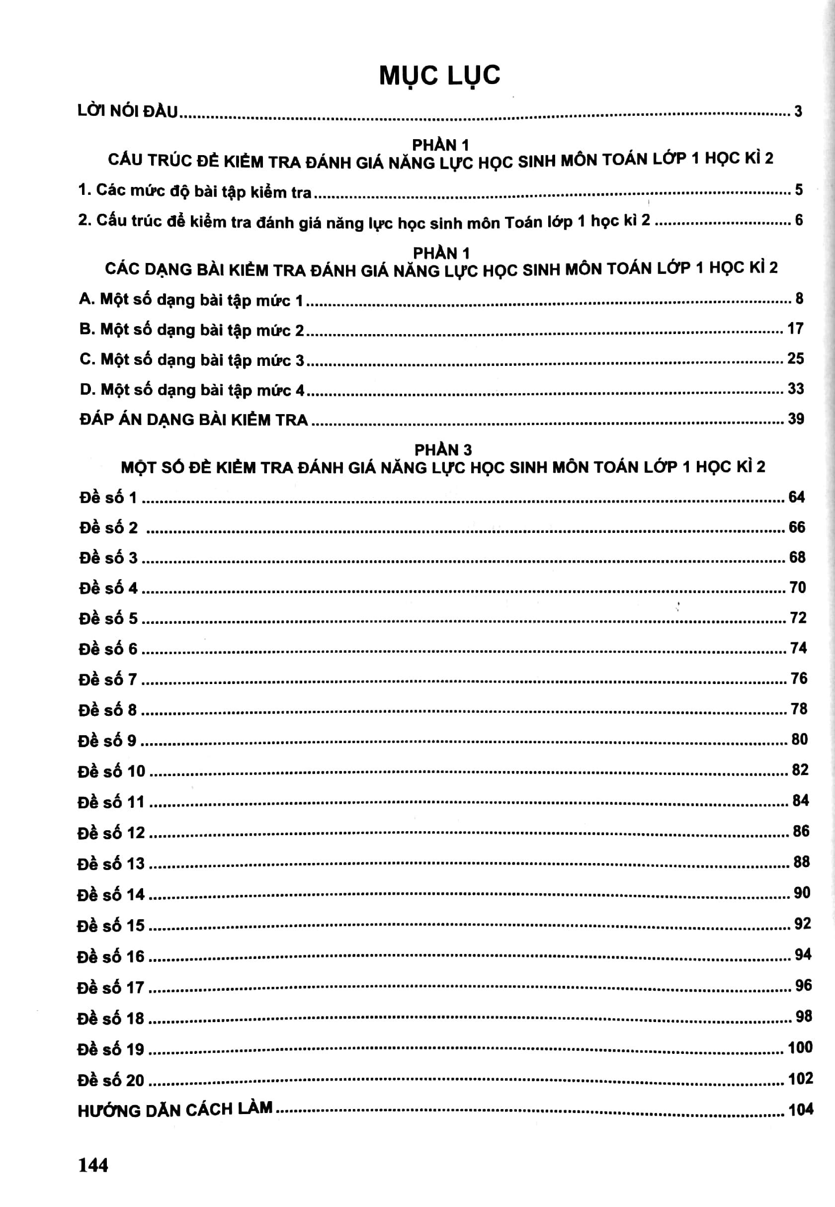 Để giúp các thầy cô và các bậc phụ huynh có thêm tài liệu hướng dẫn các em lớp 1 ôn tập trước khi kiểm tra học kì 2, chúng tôi xin giới thiệu cuốn “Kiểm tra, đánh giá năng lực học sinh lớp 1 môn Toán học kì 2”. Cuốn sách sẽ giúp học sinh ôn tập một cách hiệu quả, đồng thời giúp giáo viên và các bậc phụ huynh đánh giá đúng năng lực của học sinh, từ đó giúp các em điều chỉnh cách học để đạt hiệu quả cao nhất.