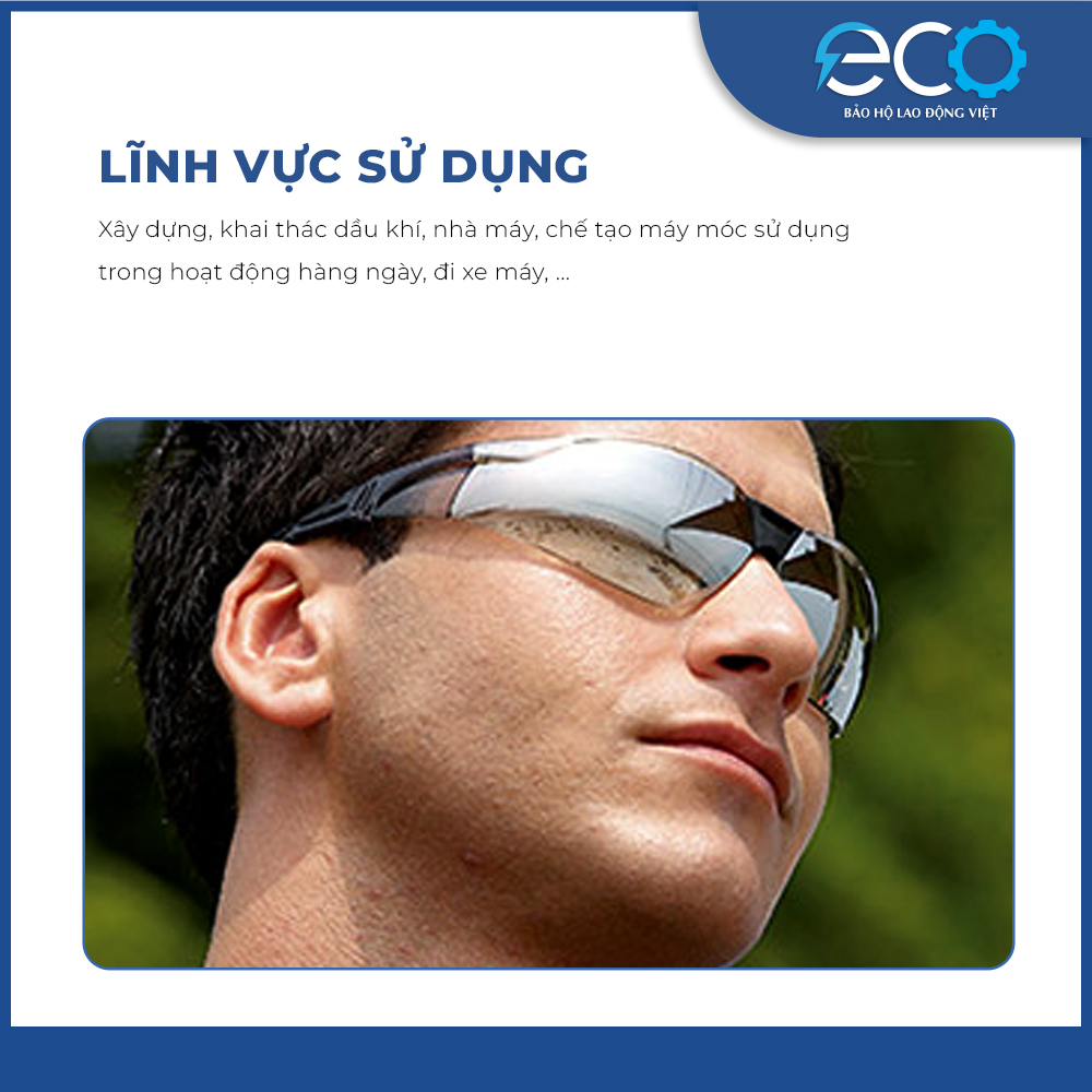 - Khi không đeo kính thì nên cho kính vào hộp để tránh va đập, xước hay bụi. Môi trường sử dụng. Kính bảo hộ A800 có thể sử dụng trong nhiều môi trường làm việc khác nhau để bảo vệ cho đôi mắt người dùng tránh khỏi những nguy cơ gây hại trong suốt quá trình làm việc :