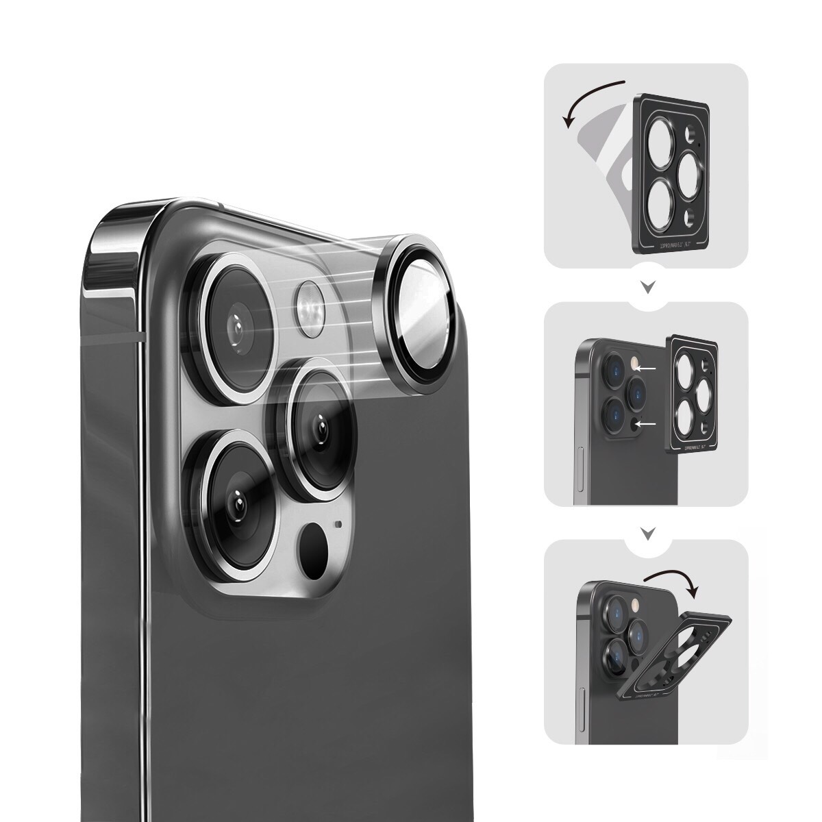 Vòng bảo vệ camera iPhone 16 Pro Max , 16 Pro chống trầy xướt, màu nguyên bản Thiết kế 3 mắt rời vừa khít với mỗi mắt camera không bị lóa khi dùng đèn Flash