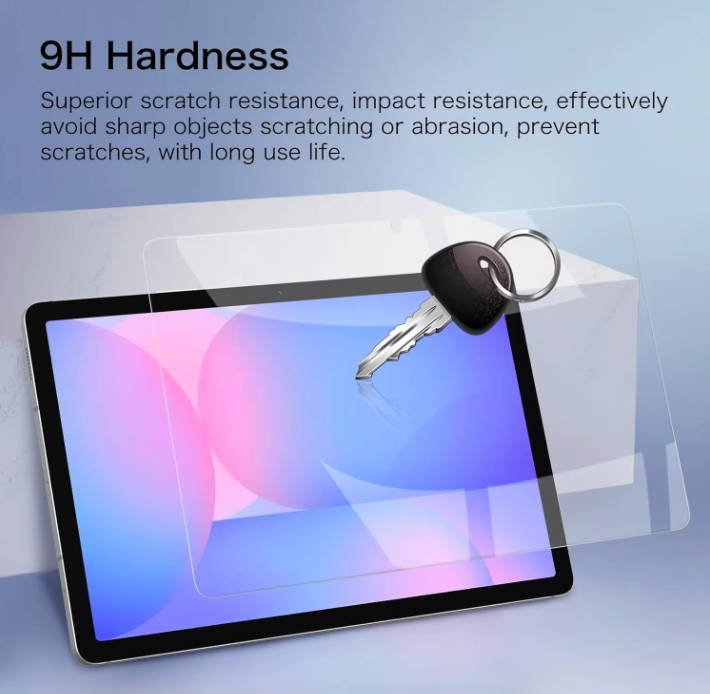 Miếng dán kính cường lực, chống vỡ màn hình cho Galaxy Tab A9 Plus. Bảo vệ màn hình một cách hoàn hảo với độ cứng lên tới 9H (gấp 20 lần tấm dán film sử