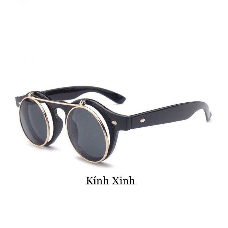 ✨Kính Râm 2 Lớp Mở Nắp Mắt Tròn Gọng Nhựa Chống Nắng Uv Cao Cấp