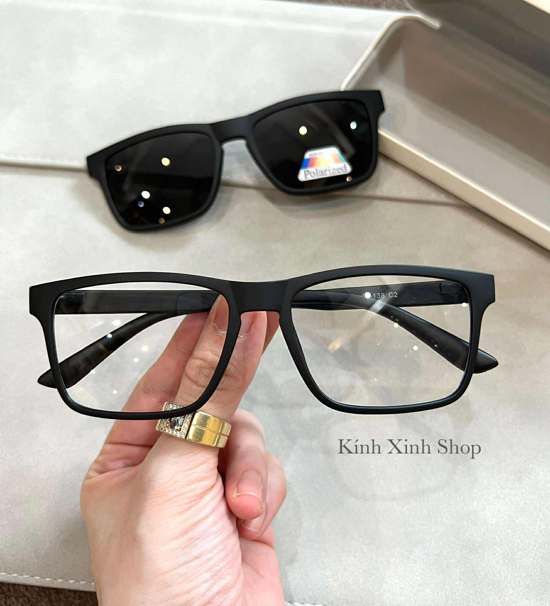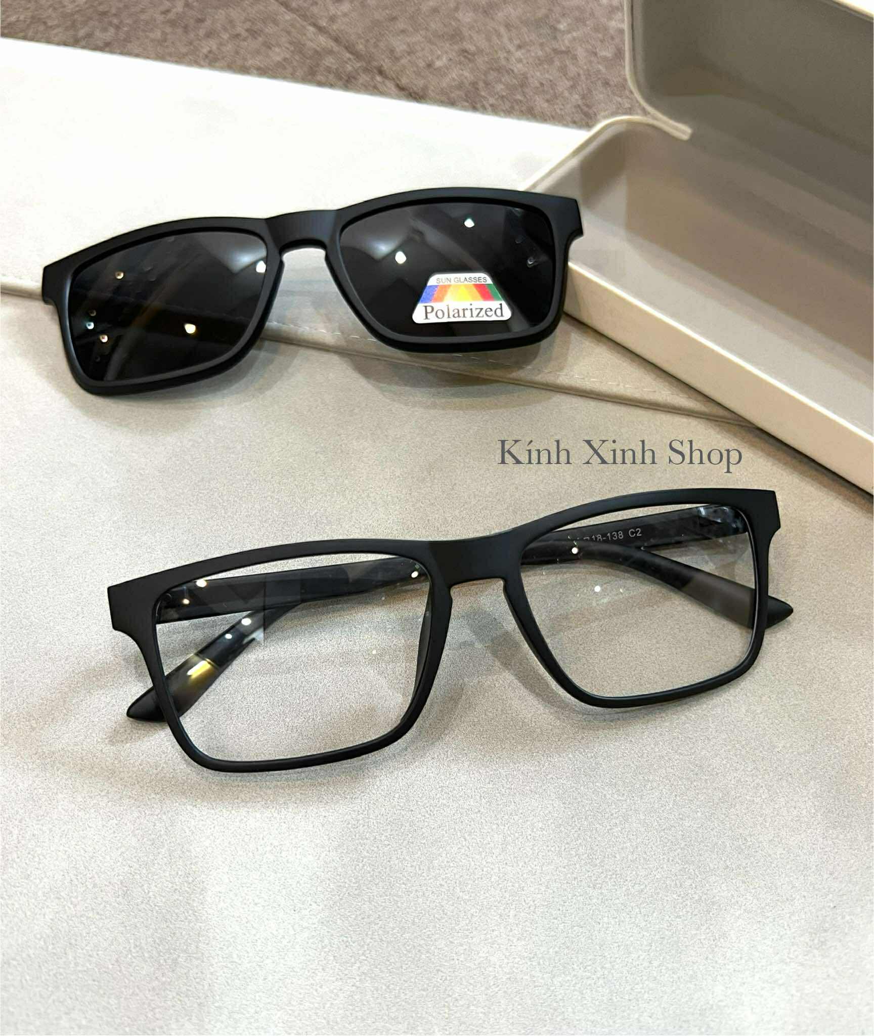 Mua tại Tiktok- Kính Râm Cận, Gọng Kính Cận, Kính Mát 2 Tròng 2in1 Mắt Vuông Gọng Ultem