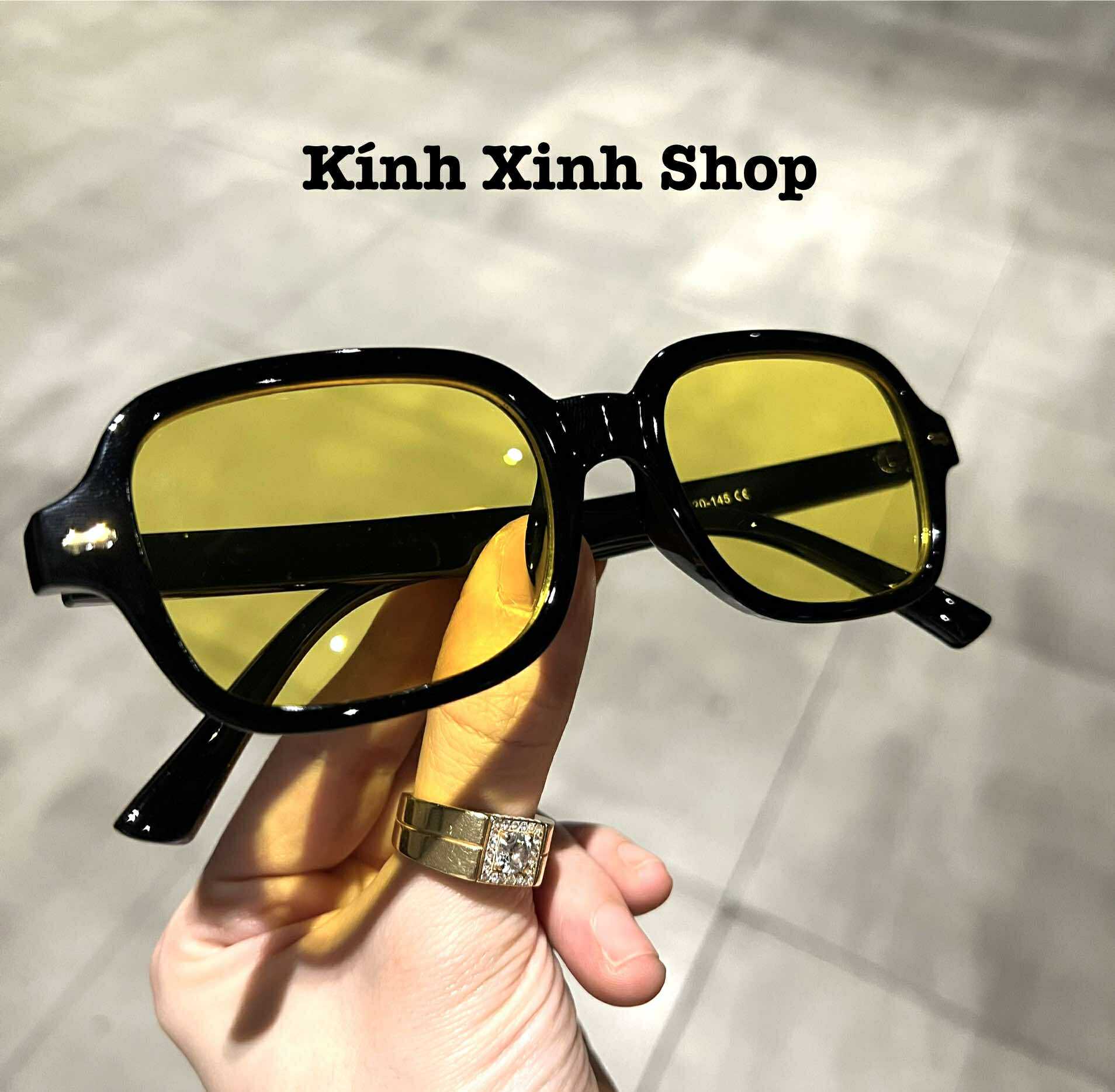 ✨Kính râm màu vàng dáng chữ nhật gọng nhựa dáng dễ đeo không kén mặt cho nam nữ