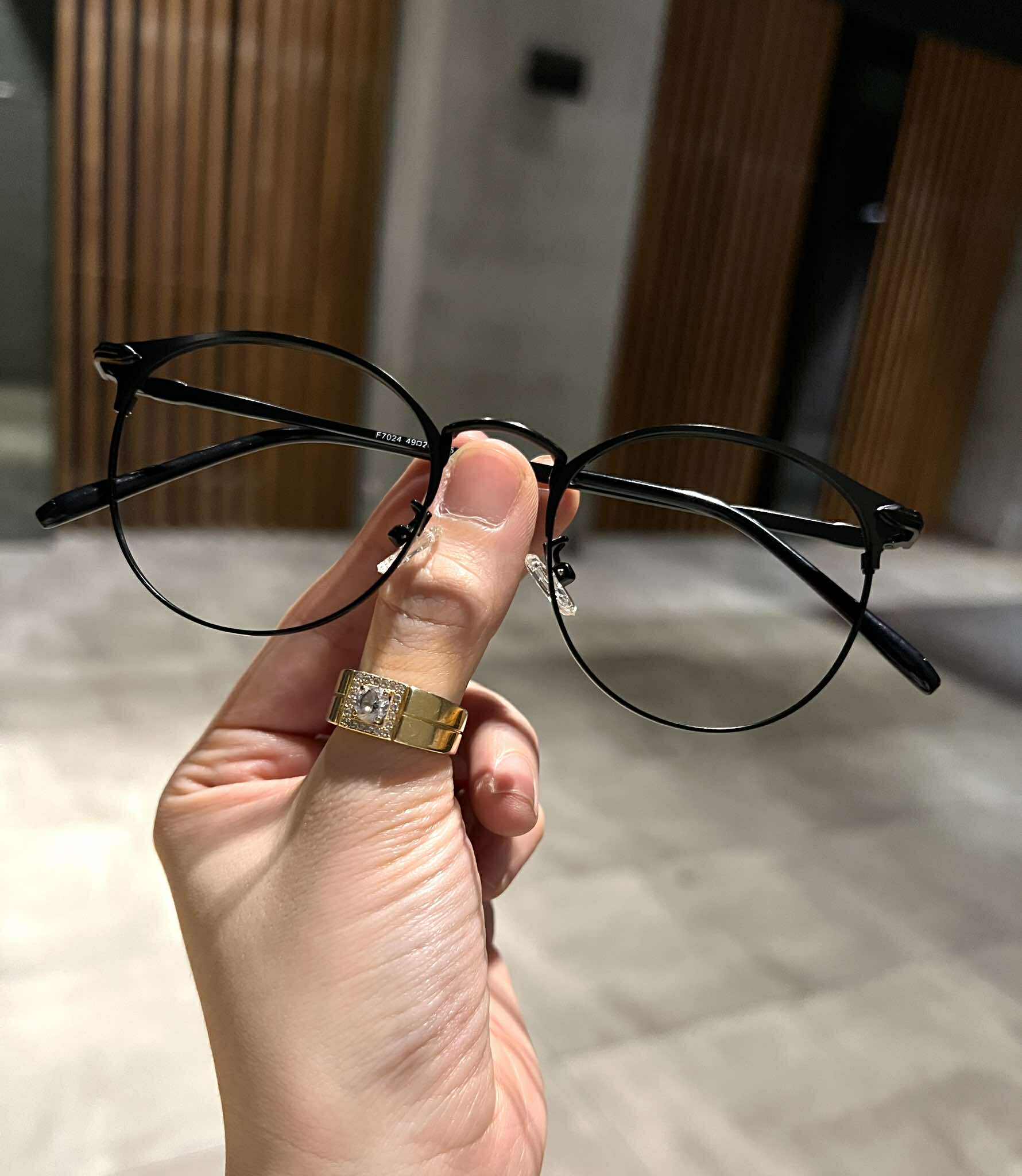 Gọng kính cận nữ bằng kim loại thiết kế mắt tròn thanh mảnh