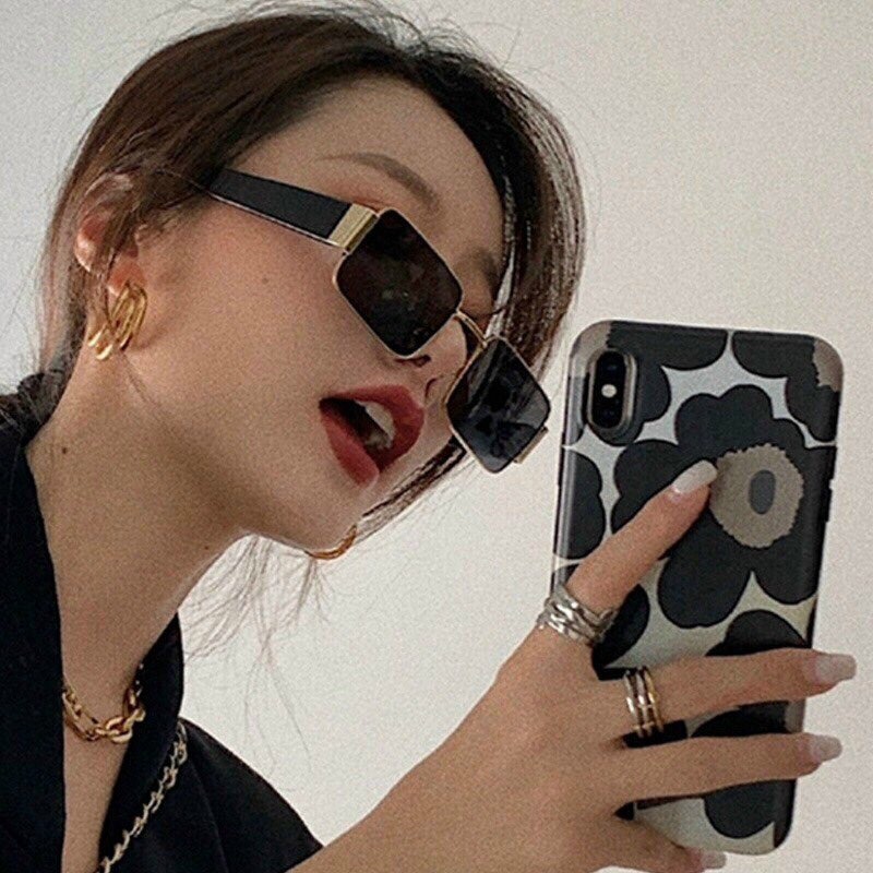 Kính râm nữ thời trang sành điệu phong cách Hàn Quốc - Giới tính: Nữ - Kiểu dáng: Vuông - Chất liệu: Polycacbonate cao cấp - Mắt kính chống nắng, chống lóa Uv giúp bảo vệ mắt khỏi tia cực tím - Tặng phụ kiện hộp đựng và khăn lau kính
