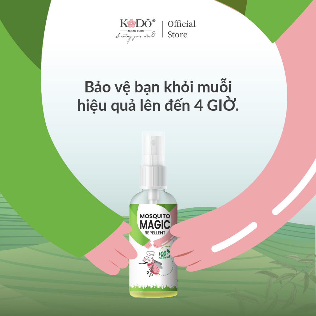 -Ngoài tác dụng đuổi muỗi hiệu quả lên đến 4 giờ, xịt đuổi muỗi hương thiên nhiên Mosquito Magic còn mang lại hương thơm nhẹ nhàng cho cơ thể