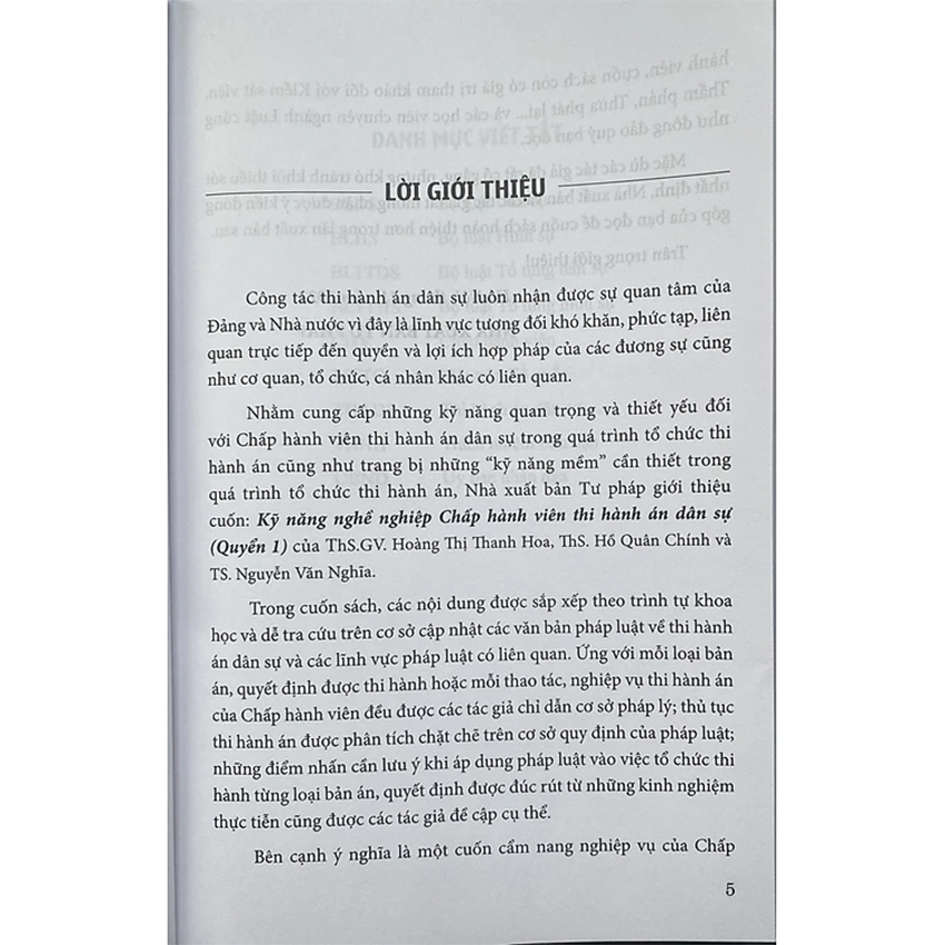 Kỹ năng nghề nghiệp Chấp hành viên thi hành án dân sự (Quyển 1) Tác giả: Ths. GV. Hoàng Thị Thanh Hoa - Ths. Hồ Quân Chính - TS. Nguyễn Văn Nghĩa Nhà xuất bản: Tư