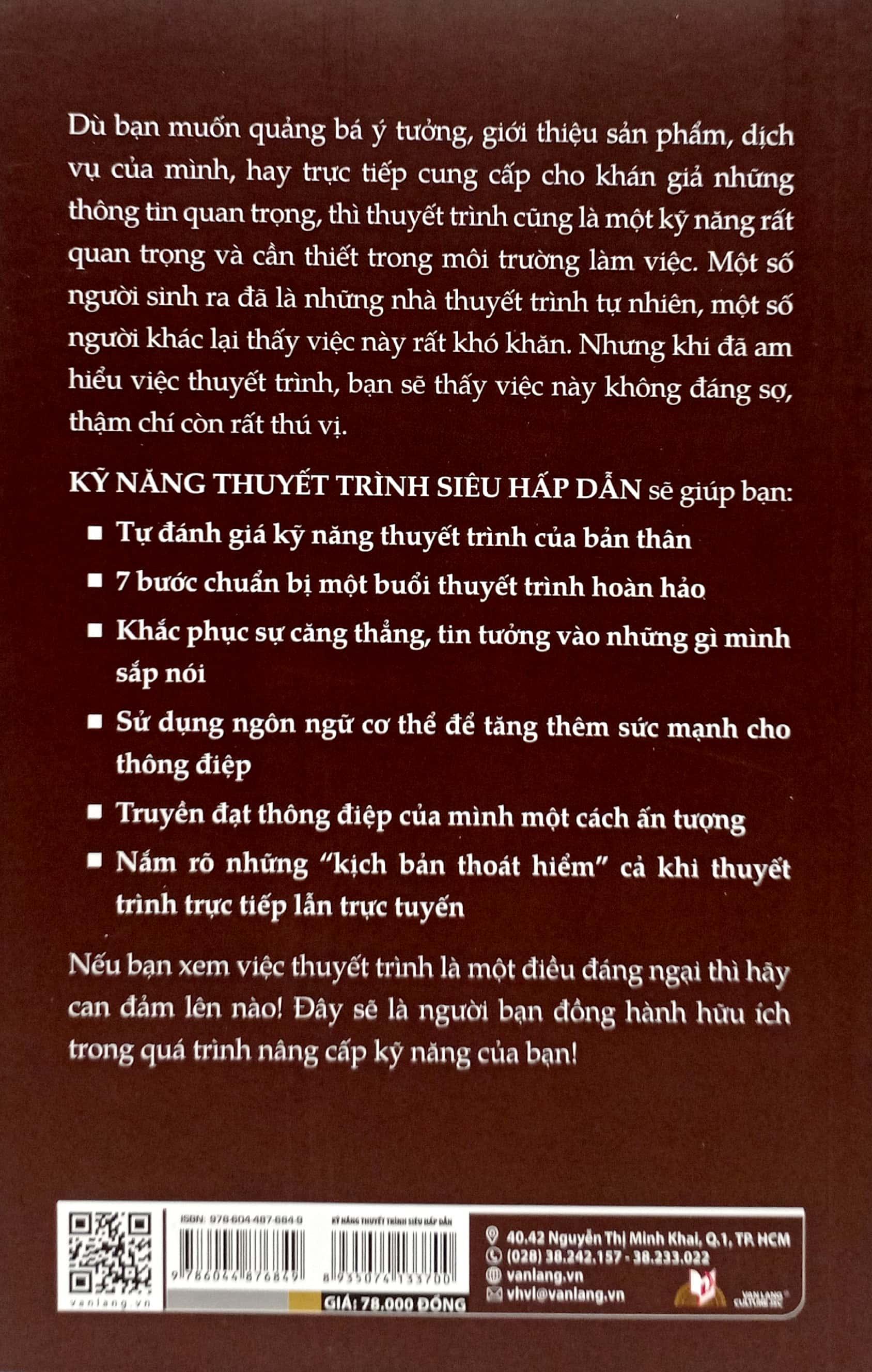 Kỹ Năng Thuyết Trình Siêu Hấp Dẫn - Vanlangbooks - Giới thiệu Kỹ Năng Thuyết Trình Siêu Hấp Dẫn Dù bạn muốn quảng bá ý tưởng, giới thiệu sản phẩm, dịch vụ của mình, hay