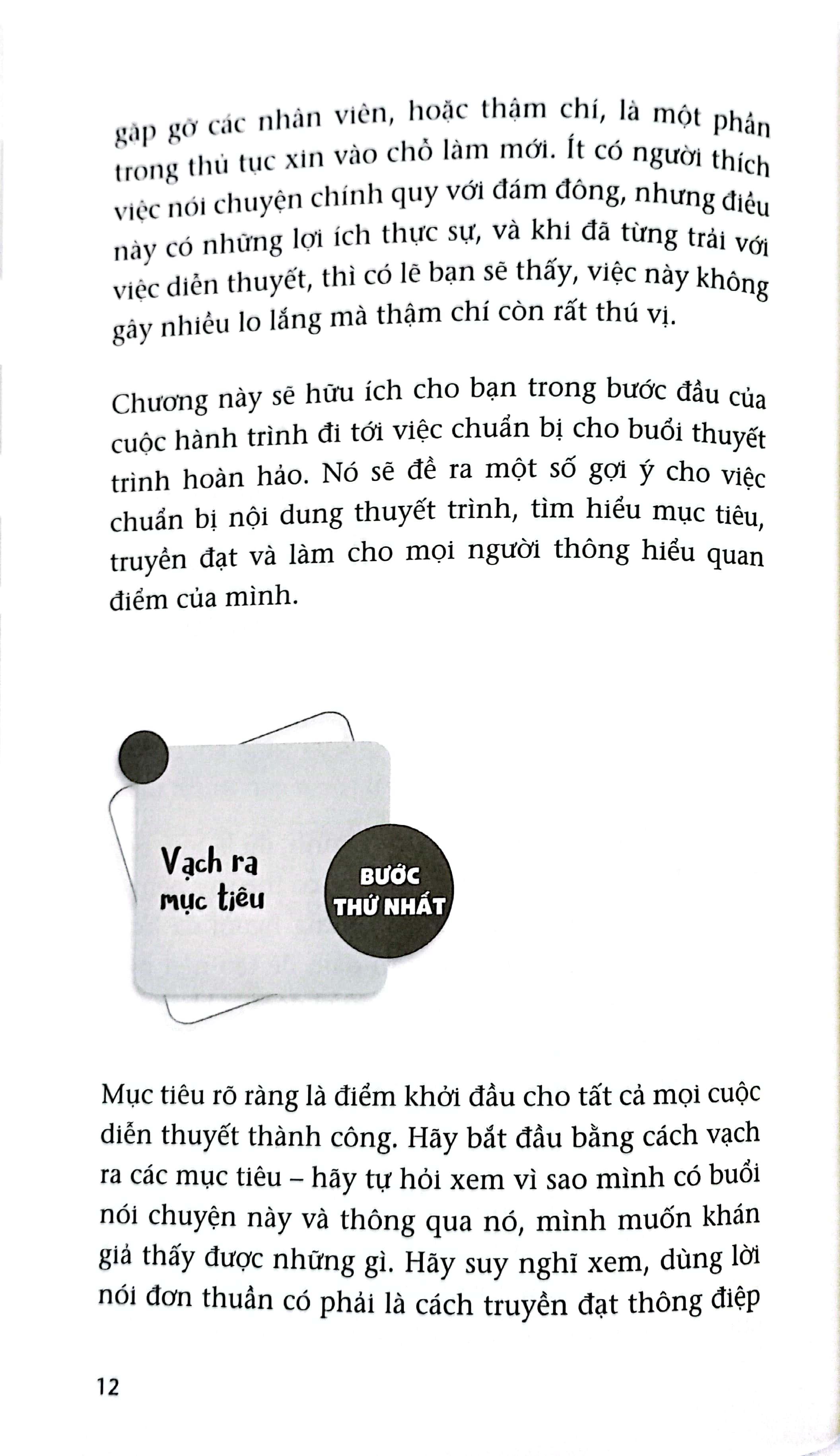 Kỹ Năng Thuyết Trình Siêu Hấp Dẫn Dù bạn muốn quảng bá ý tưởng, giới thiệu sản phẩm, dịch vụ của m.ình, hay trực tiếp cung cấp cho khán giả những thông tin quan trọng, thì thuyết trình cũng là một kỹ năng rất quan trọng và cần thiết trong môi trường làm việc. Một số người sinh ra đã là những nhà thuyết trình tự nhiên, một số người khác lại thấy việc này rất khó khăn. Nhưng khi đã am hiểu việc thuyết trình, bạn sẽ thấy việc này không đáng sợ, thậm chí còn rất thú vị. KỸ NĂNG THUYẾT TRÌNH SIÊU HẤP DẪN sẽ giúp bạn