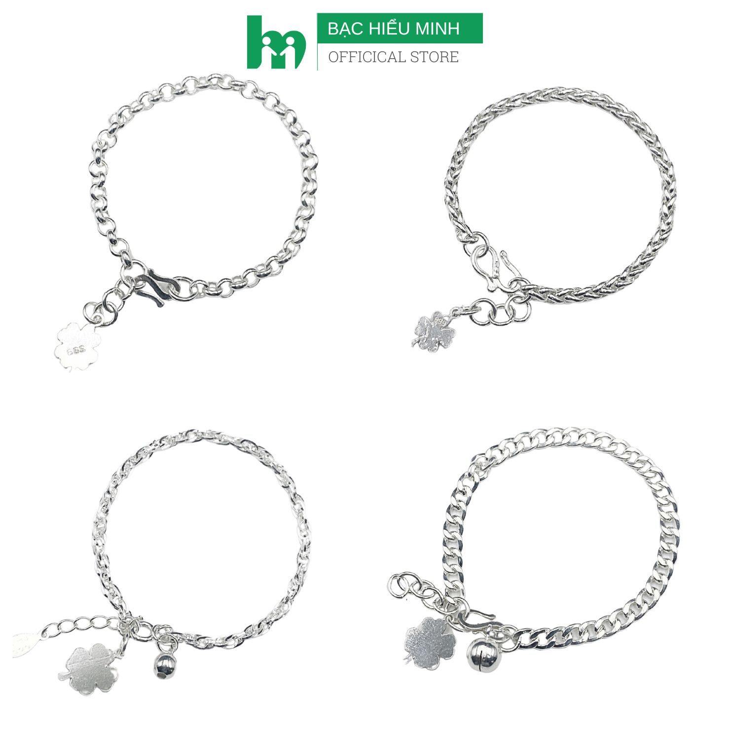 ✨Lắc Tay Cho Bé Bạc Ta Cỏ 4 Lá Chính Hãng Bạc Hiểu Minh LTE564