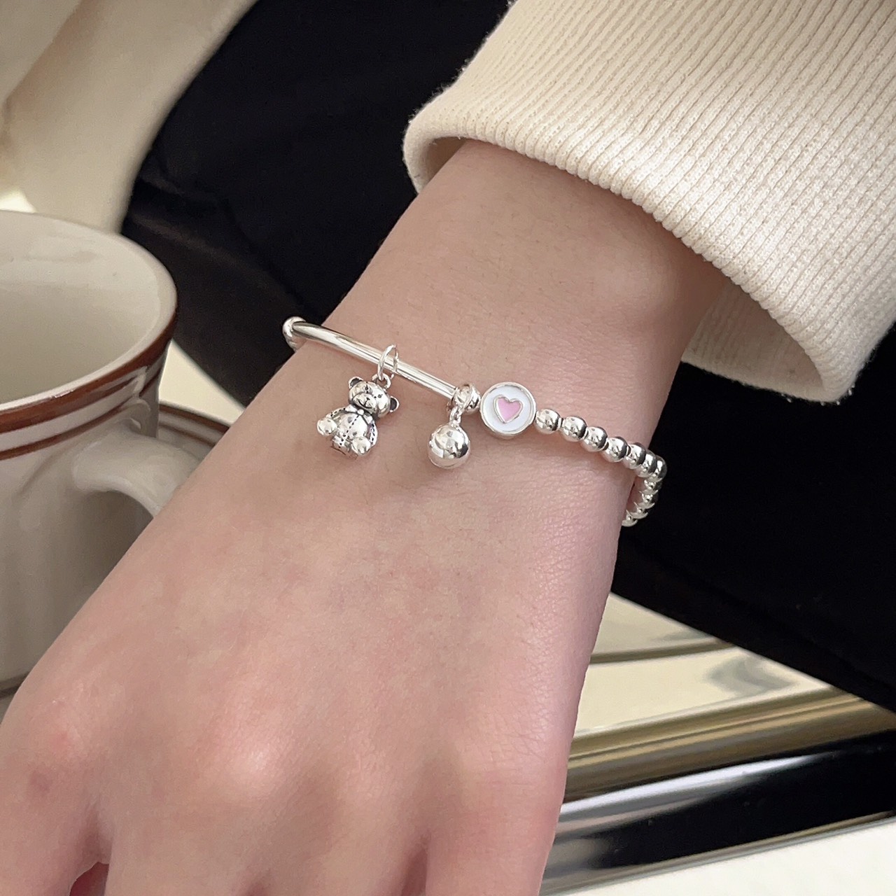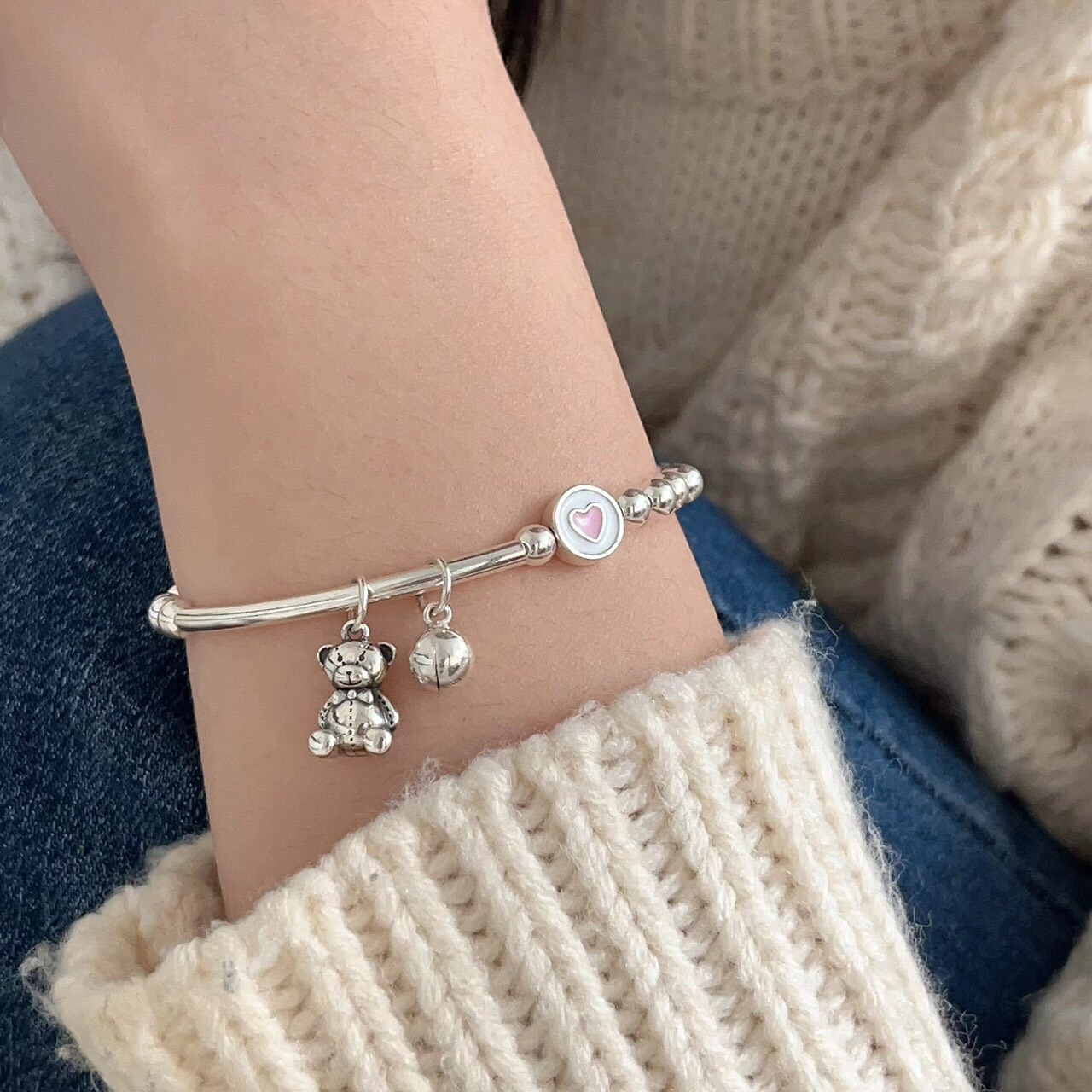 Là con gái, hẳn bạn luôn bị cuốn hút trước những bộ cánh thời trang và những đôi giày sành điệu. Tuy nhiên để làm hoàn hảo hình ảnh của mình trong mắt người đối diện, các bạn cần thêm những món phụ kiện bé bé xinh xinh để điểm tô cho vẻ ngoài thêm ấn tượng. Và hôm nay, S sẽ mang đến các bạn cơ hội sở hữu chiếc lắc tay rất dễ thương, được làm bằng bạc ta. Sản phẩm thích hợp với những bạn gái có phong cách dịu dàng, nữ tính.