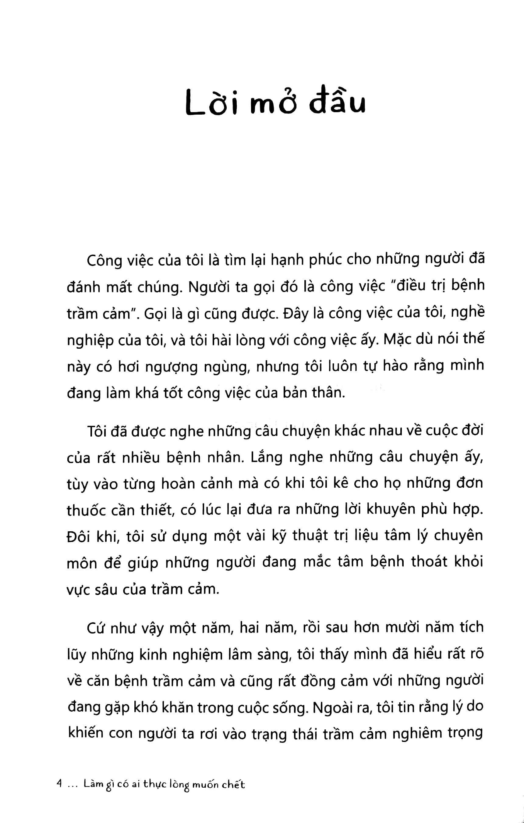 Nhưng phải hơn mười năm sau khi trở thành bác sĩ chuyên khoa, tôi mới biết mình đã sai và các bệnh nhân đã đúng. Không phải vì tôi đã gặp nhiều bệnh nhân và tích lũy được những kinh nghiệm lâm sàng, mà chỉ khi chính bản thân tôi tự trải qua những tháng ngày dài đau đớn vì bệnh trầm cảm, tôi mới hiểu.