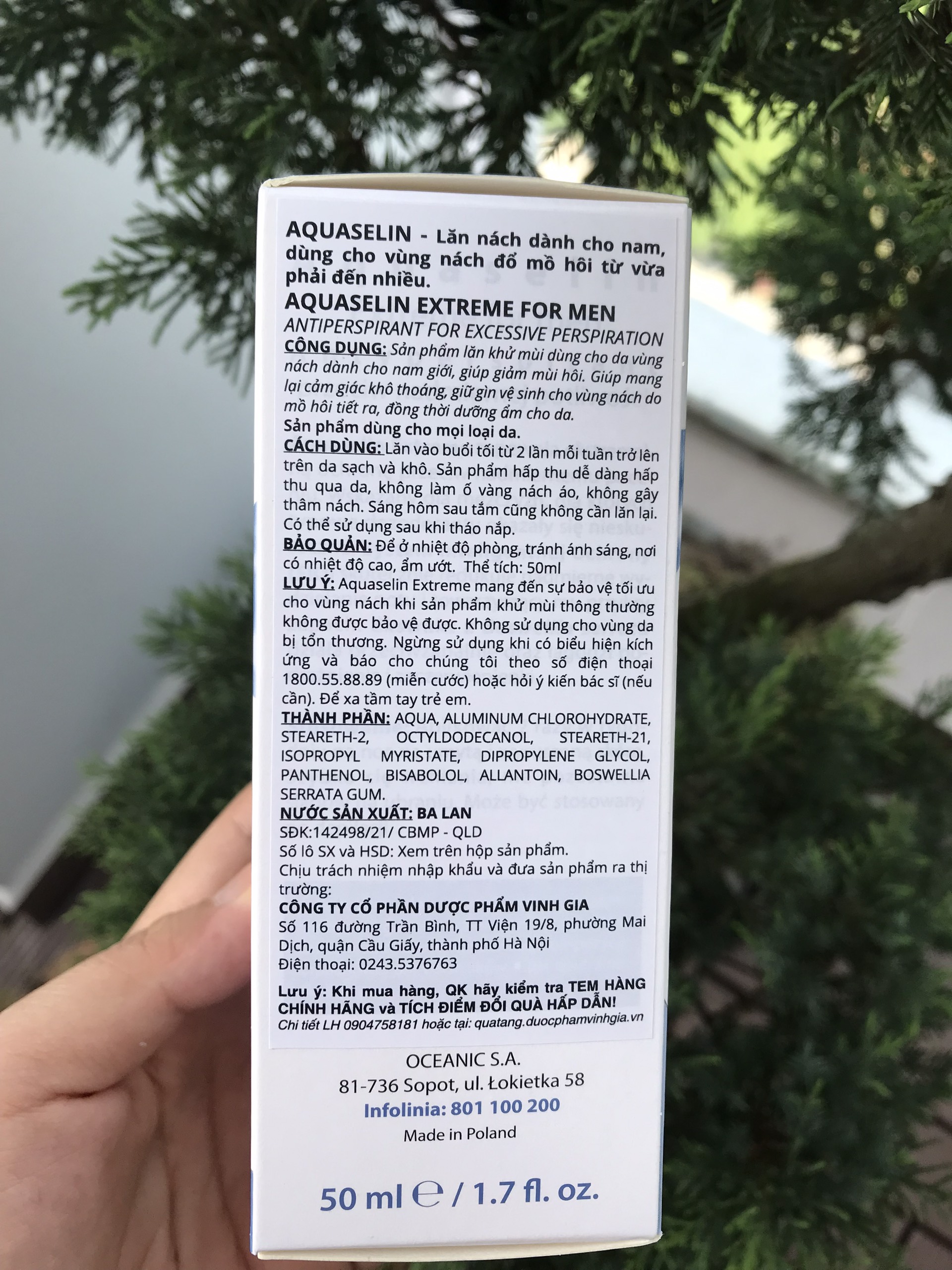 Aquaselin Lăn khử mùi Aquaselin dành cho nam giới dùng cho vùng nách đổ mồ hôi & mùi hôi từ vừa phải đến nhiều. THÀNH PHẦN SẢN PHẨM Thành phần từ thiên nhiên: Aqua, Aluminum