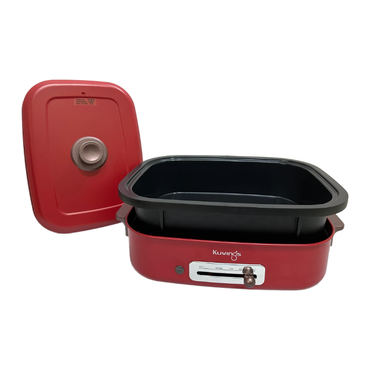 Lẩu nướng điện đa năng hiệu Kuvings KMG-200B 2 trong 1 gồm 2 lòng gốm Ceramic chống dính bằng tia hồng ngoại (lòng nướng ceramic bằng hơi nước chống dính và lòng nồi lẩu ceramic chống dính) với 9 chức năng nấu (nấu lẩu, nướng, nướng bằng hơi nước, chiên, xào, hầm, kho, luộc, hấp), thiết kế nắp chống trào, tay cầm cách nhiệt, 4 mức điều chỉnh nhiệt độ [Warm-Low-Med-High] từ 65ºC – 250ºC phù hợp với từng loại nguyên liệu, nóng nhanh tiết kiệm thời gian, chế độ tự động ngắt điện an toàn khi quá nhiệt, có chức năng ngắt nhiệt tự động để tiết kiệm điện, màu xám xanh. Nhằm đáp ứng sở thích ăn các món nướng và lẩu tại nhà mà không chứa nhiều dầu mỡ và an toàn cho người sử dụng. Thương hiệu Kuvings đã cho ra đời những mẫu Lẩu điện phủ gốm Ceramic đa năng hiệu Kuvings cao cấp tại thị trường Việt Nam. Lẩu điện phủ gốm Ceramic đa năng Kuvings 2 trong 1 KMG-200B được sản xuất từ linh kiện cao cấp có độ bền cao không chứa chất độc hại. Thiết kế nhỏ gọn, sang trọng, hiện đại và an toàn theo phong cách “Newtro”. Hơn thế nữa, với công nghệ phủ lớp gốm “Ceramic” chống dính bằng tia hồng ngoạ. Giúp cho bề mặt lồng lẩu điện khả năng chịu nhiệt cao, chống trầy xước, chống dính. Thức ăn chín đều nhanh mà không bị khét, không tạo khói và không cần sử dụng nhiều dầu mỡ. Đây là một sự lựa chọn lí tưởng giúp bạn chế biến và thưởng thức những món nướng, xào, hấp và lẩu yêu thích ngay tại bàn ăn gia đình. ĐẶC ĐIỂM NỔI BẬT Thiết kế hài hòa với cảm giác sang trọng, hiện đại và tinh tế với độ bền cao theo thời gian sử dụng. 2 lòng của lẩu điện tách rời nên có thể được sử dụng thay thế cho nhau phù hợp với nhu cầu nấu nướng của bạn cũng như thuận tiện cho việc vệ sinh. Sản phẩm không chứa chất gây ung thư “PFOA Free” và “PFOS Free” được chứng nhận bởi Cục quản lý thực phẩm và dược phẩm Hoa Kỳ “US FDA“. Chống gỉ sét, chống ăn mòn, chống dính, chống bám bẩn, khử mùi và dễ dàng vệ sinh. Nắp được thiết kế chống trào và hạn chế tối đa lượng hơi nước thoát ra ngoài giữ hương vị và dinh dưỡng trong món ăn đặc biệt là những món hấp, hầm hay nướng bằng hơi nước. Có nhiều chức năng: nấu lẩu, nướng, nướng bằng hơi nước, chiên, xào, hầm, kho, luộc, hấp. Với thiết kế rãnh thoát dầu trên bề mặt lồng nướng cho lượng dầu mỡ dư chảy xuống theo rãnh trong khi nướng giúp thức ăn không chứa nhiều dầu mỡ. Công nghệ phủ lớp gốm “Ceramic” chống dính bằng tia hồng ngoại cho bề mặt lồng lẩu điện cực kỳ bền và không bong tróc, tối đa hóa hiệu suất dẫn và giữ nhiệt làm thức ăn chín đều nhanh mà thức ăn không bị cháy khét, không tạo khói tiết kiệm thời gian cũng như chi phí nhiên liệu nấu và giảm sự phá hủy chất dinh dưỡng trong quá trình nấu ăn một cách hiệu quả. Cấu tạo mâm nhiệt nguyên khối sẽ hạn chế lượng nhiệt tỏa ra nhằm tiết kiệm điện tiêu thụ trong khi nấu cũng như lồng của lẩu điện nóng nhanh và đều hơn. 4 mức điều chỉnh nhiệt độ Warm-Low-Med-High (tương ứng từ 65ºC – 250ºC) phù hợp với yêu cầu nấu nướng của nhiều món ăn bằng cần gạt điều chỉnh nhiệt độ trượt đơn giản. Tích hợp chế độ ngắt/mở điện tự động khi lẩu điện đạt được nhiệt độ cài đặt để tiết kiệm điện. Hệ thống cảm biến nhiệt độ và bảo vệ quá nhiệt sẽ vô hiệu hóa hoạt động của lẩu điện để đảm bảo an toàn và hạn chế các sự cố đáng tiếc xảy ra trong quá trình sử dụng. Thiết kế tay cầm chắc chắn và chống nóng trong khi nấu cũng như thuận tiện việc cầm nắm, di chuyển lồng lẩu. Thiết kế sang trọng, gọn nhẹ và đa dụng theo phong cách NEWTRO Lẩu điện phủ gốm Ceramic đa năng Kuvings 2 trong 1 KMG-200B dung tích 4.0 lít có thiết kế nhiều màu sắc, nhỏ gọn và an toàn theo phong cách “Newtro” Hàn Quốc. Tạo cảm hứng trong việc nấu ăn cũng như làm không gian nhà bếp trở nên sang trọng, hiện đại. Bên cạnh đó, với cấu tạo từ linh kiện cao cấp không chứa chất độc hại giữ lẩu điện lâu phai màu với độ bền cao theo thời gian sử dụng. Với thiết kế tay cầm chắc chắn và chống nóng trong khi nấu cũng như thuận tiện việc cầm nắm, di chuyển lẩu điện. Lồng phủ gốm Ceramic chống dính, chống bám bẩn và khử mùi Lẩu điện KMG-200B là sản phẩm không chứa chất gây ung thư “PFOA Free” và “PFOS Free” được chứng nhận bởi Cục quản lý thực phẩm và dược phẩm Hoa Kỳ “US FDA”. Được làm từ nhôm tinh khiết nguyên khối cao cấp phủ gốm Ceramic cực kỳ bền, không bong tróc, chống gỉ sét, chống ăn mòn, chống dính, chống bám bẩn. Không gây ra những chất độc hại cho sức khỏe của người dùng, rất dễ vệ sinh mà không bị ám mùi thực phẩm. Điều chỉnh nhiệt độ đơn giản dễ sử dụng Lẩu điện phủ gốm Ceramic đa năng Kuvings 2 trong 1 KMG-200B với th
