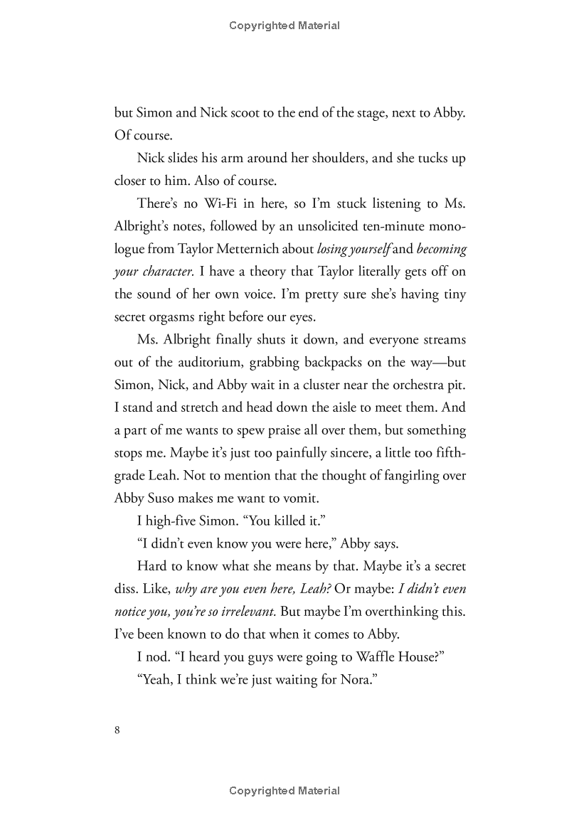 In this sequel to the acclaimed Simon vs. the Homo Sapiens Agenda—soon to be a major motion picture, Love, Simon—we follow Simon’s BFF Leah as she grapples with changing friendships, first love, and senior year angst.When it comes to drumming, Leah Burke is usually on beat—but real life isn’t always so rhythmic.She’s an anomaly in her friend group: the only child of a young, single mom, and her life is decidedly less privileged. She loves to draw but is too self-conscious to show it. And even though her mom knows she’s bisexual, she hasn’t mustered the courage to tell her friends—not even her openly gay BFF, Simon.So Leah really doesn’t know what to do when her rock-solid friend group starts to fracture in unexpected ways. With prom and college on the horizon, tensions are running high.It’s hard for Leah to strike the right note while the people she loves are fighting—especially when she realizes she might love one of them more than she ever intended.