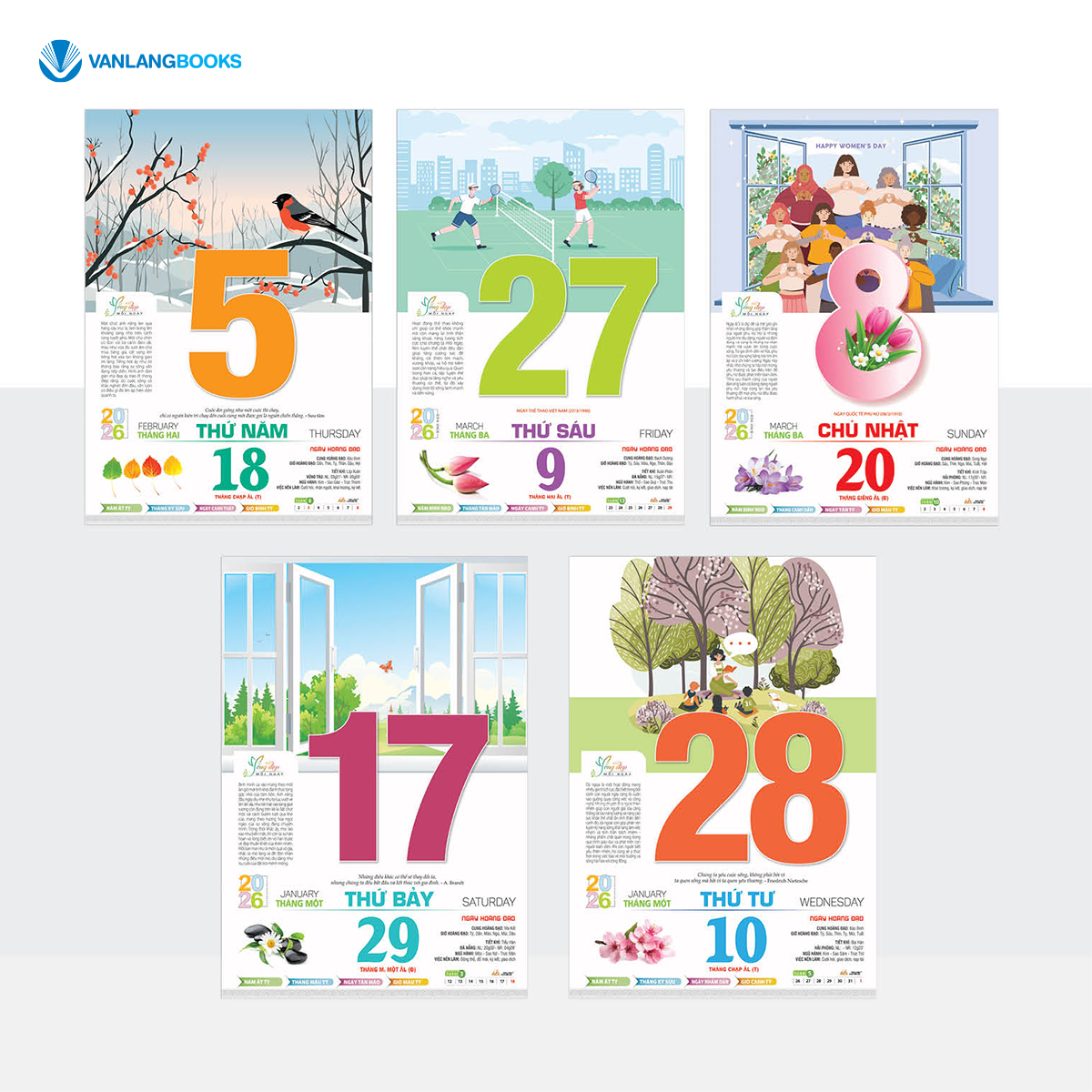 Lịch 2026 Bloc Siêu Đại – Chủ Đề Sống Đẹp Mỗi Ngày | Lịch Tết Treo Tường Cao Cấp Vanlangbooks | FREESHIP (Mã: VL04a) Lịch 2026 Bloc Siêu Đại – Chủ đề Sống Đẹp Mỗi