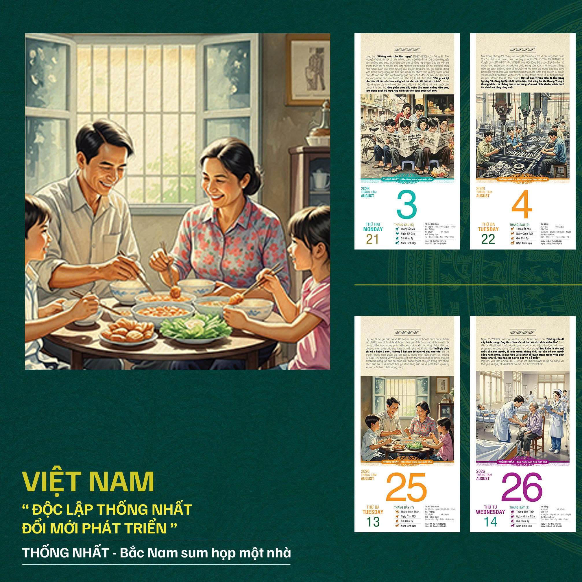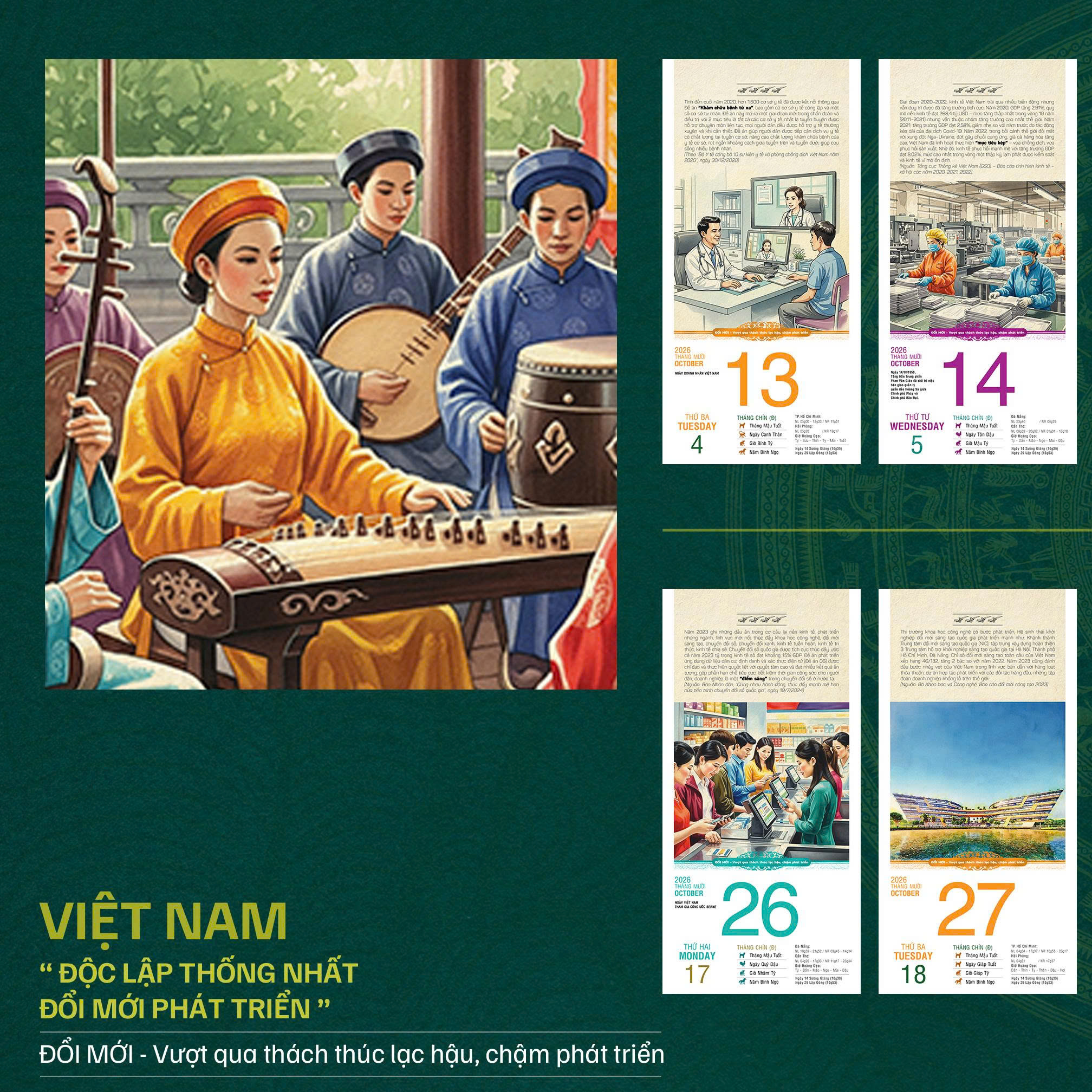 Bộ lịch Bloc 365 ngày năm 2026 với chủ đề "VIỆT NAM: Độc lập – Thống nhất – Đổi mới – Phát triển" là một hành trình thị giác và cảm xúc, tái hiện dòng