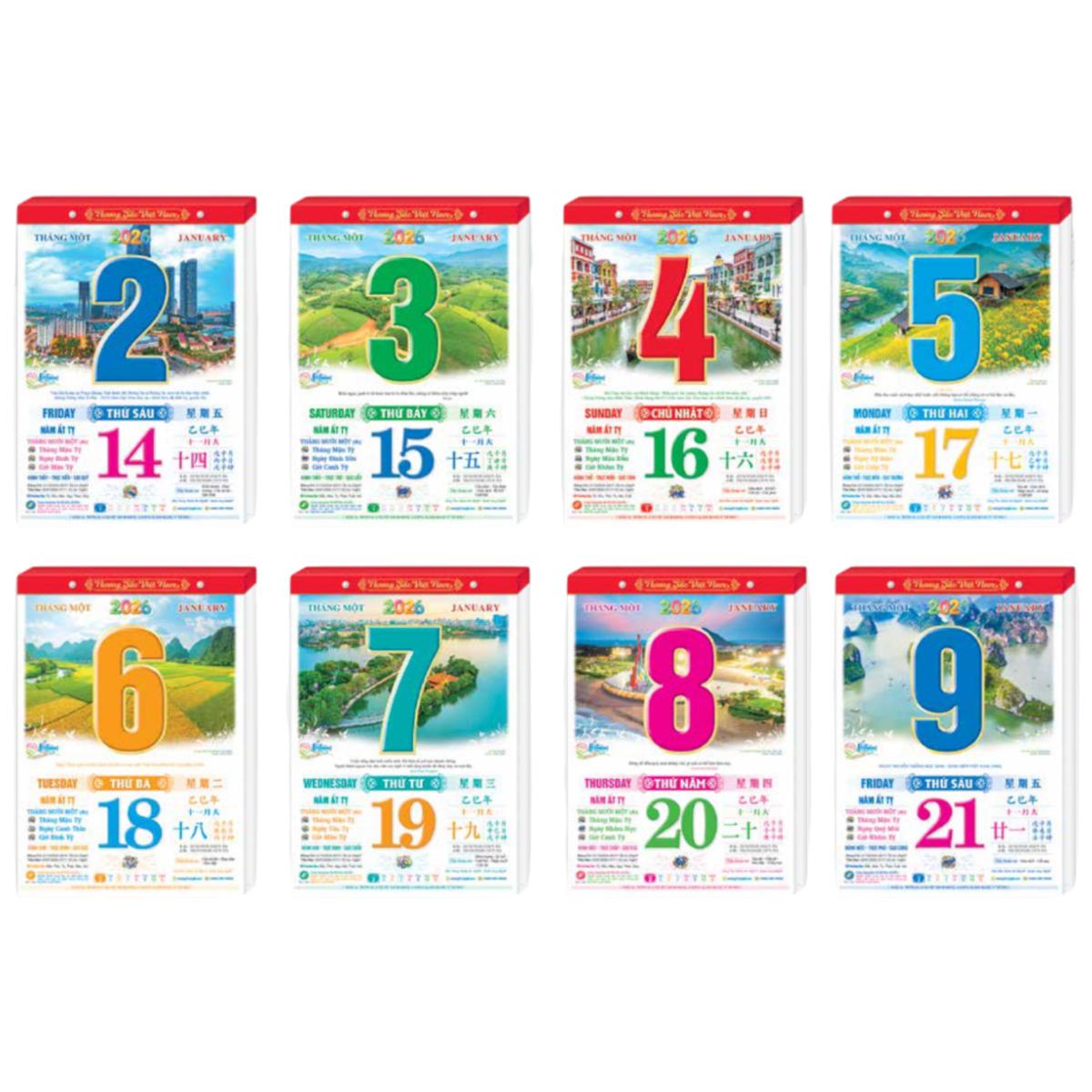 - Quyển Bloc lịch 2026 dùng gắn vào các loại bìa lịch treo tường, thay thế Bloc năm cũ. * QUY CÁCH BLOC LỊCH: - Chất lượng in công nghệ hiện đại, sắc nét, in