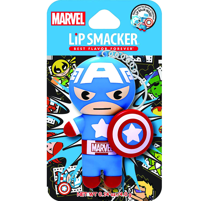 Hãy sẵn sàng thử thách bản thân trong nhiệm vụ kế tiếp cùng với siêu anh hùng đội trưởng Mỹ – Captain America dưới hình dạng son dưỡng hương vị quả việt quất xanh! Son siêu nhân Marvel – Captain America kết hợp móc chìa khóa là một phụ kiện trang trí vô cùng đáng yêu mà bạn không thể bỏ qua mỗi khi ra đường đó. Để đôi môi bạn được nuôi dưỡng trong nhiều giờ liền cùng Lip Smacker siêu anh hùng nhé!
