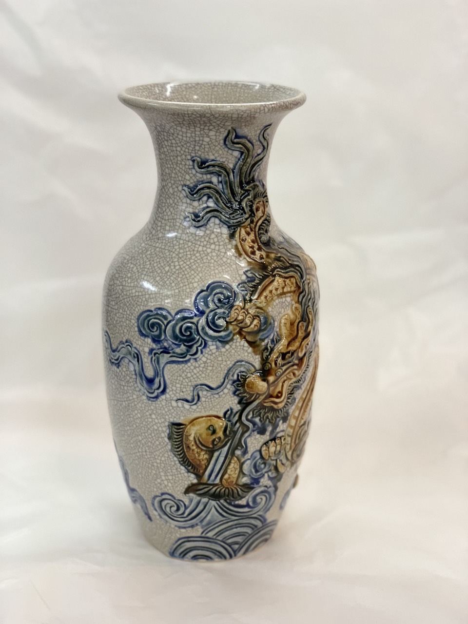Lọ lộc bình Rồng đắp nổi men rạn cao cấp Bát Tràng cao 25cm
