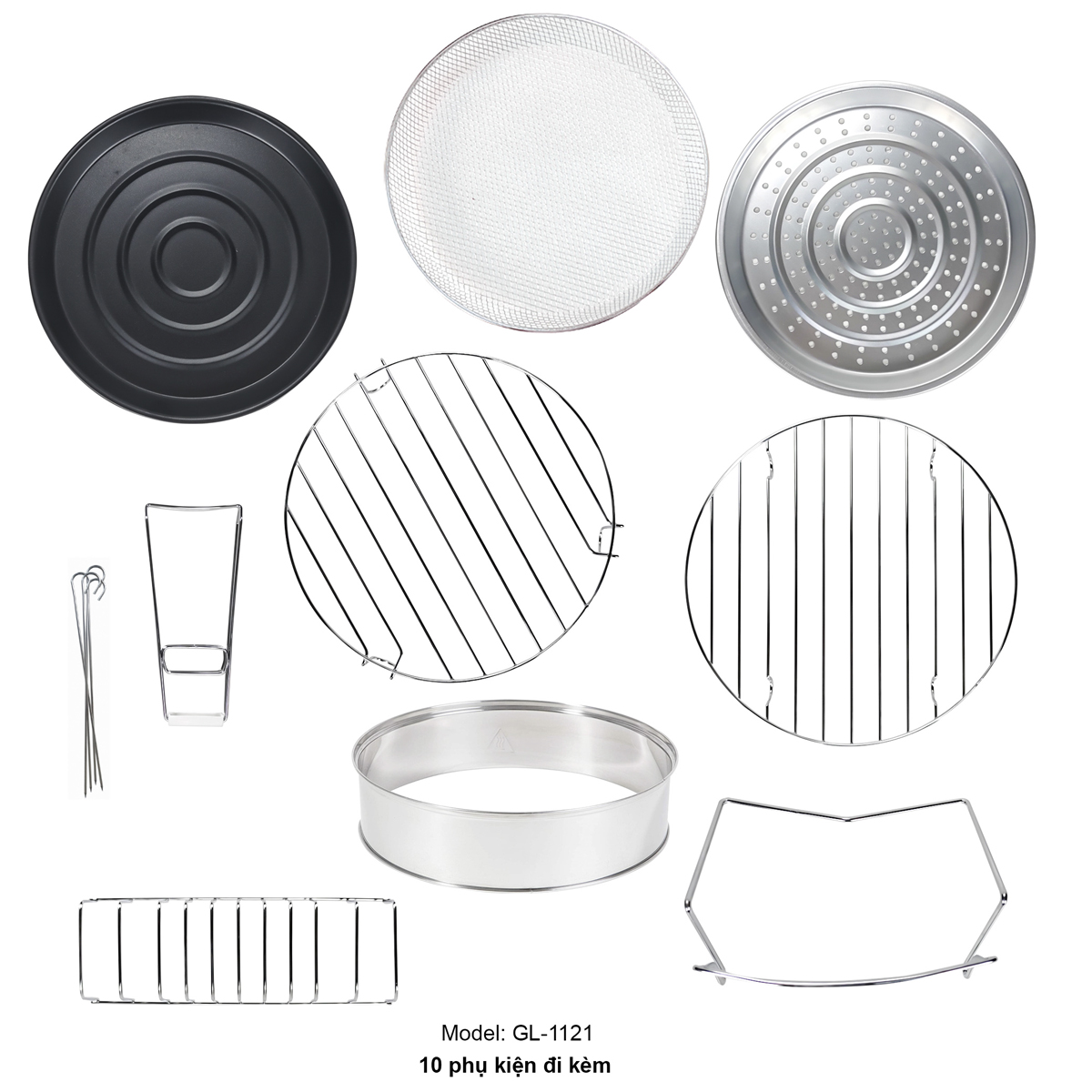 - Lò nướng điện Gali 1121 được tặng kèm 8 phụ kiện tiện lợi và đa năng