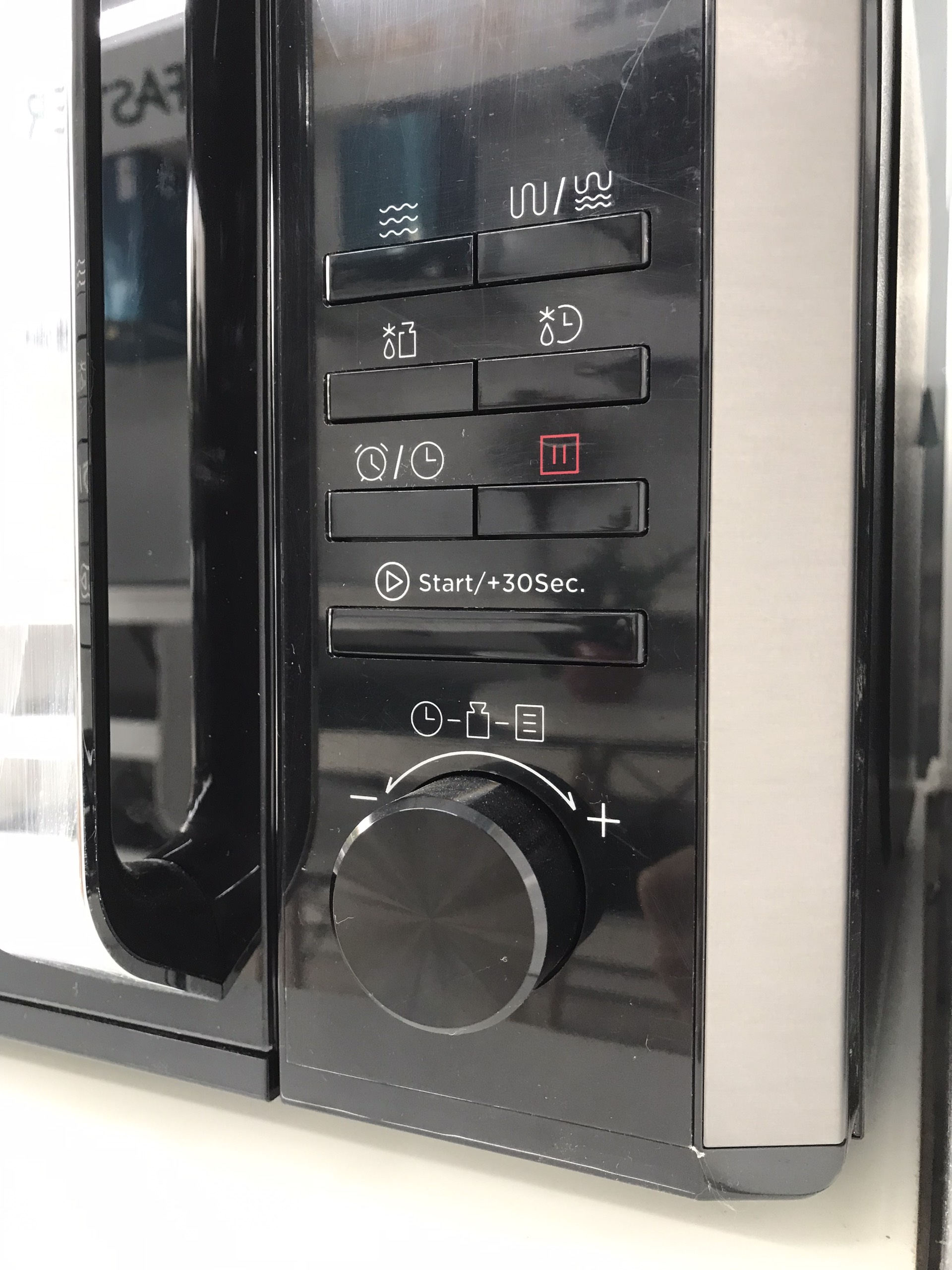 - Bảng điều khiển điện tử kết hợp phím, núm điều chỉnh: giúp người dùng linh hoạt lựa chọn các chức năng của lò như vi sóng, nướng, vi sóng kết hợp nướng