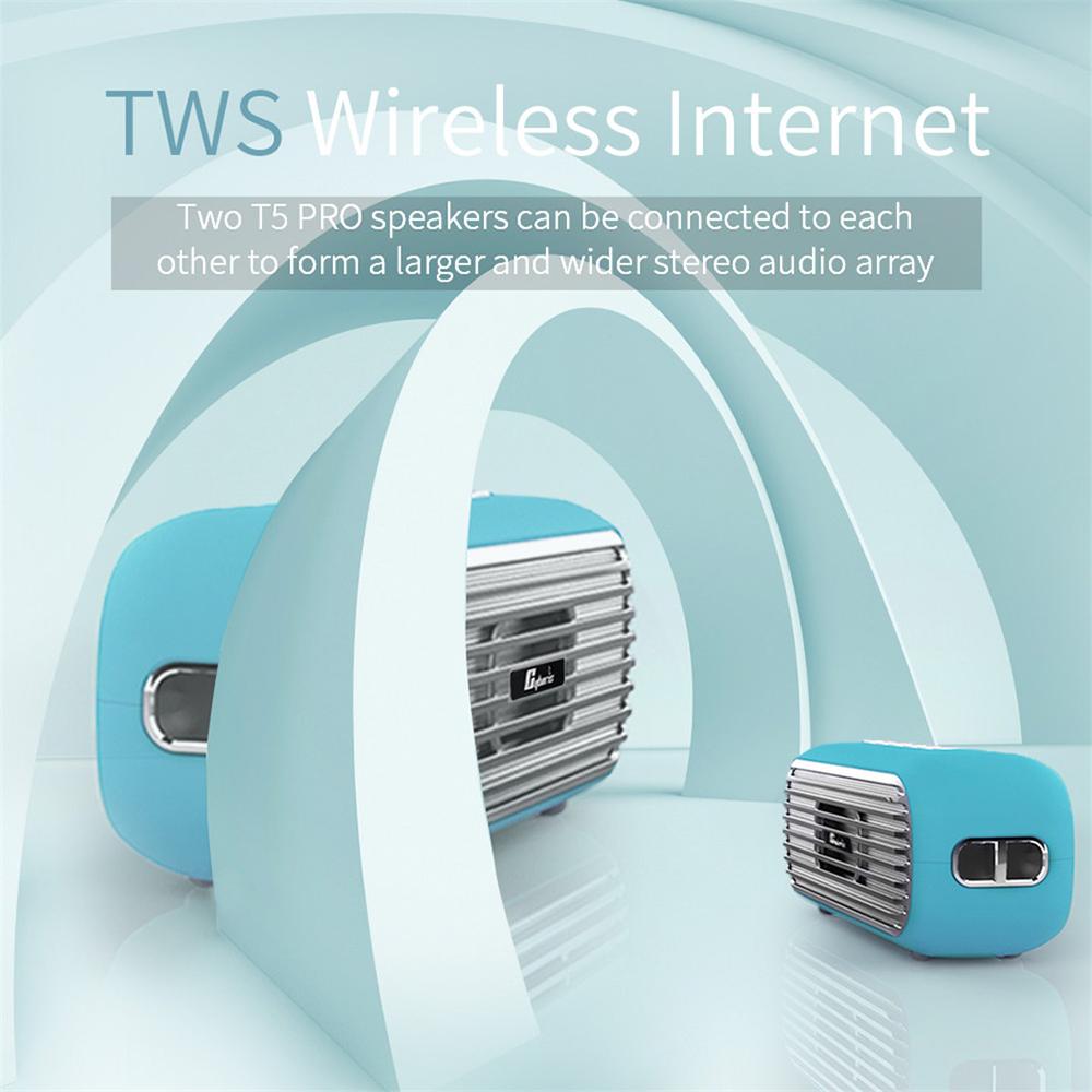 TWS Wireless Internet. Two T5 PRO speakers can be connected to each other to form a larger and wider stereo audio array.
