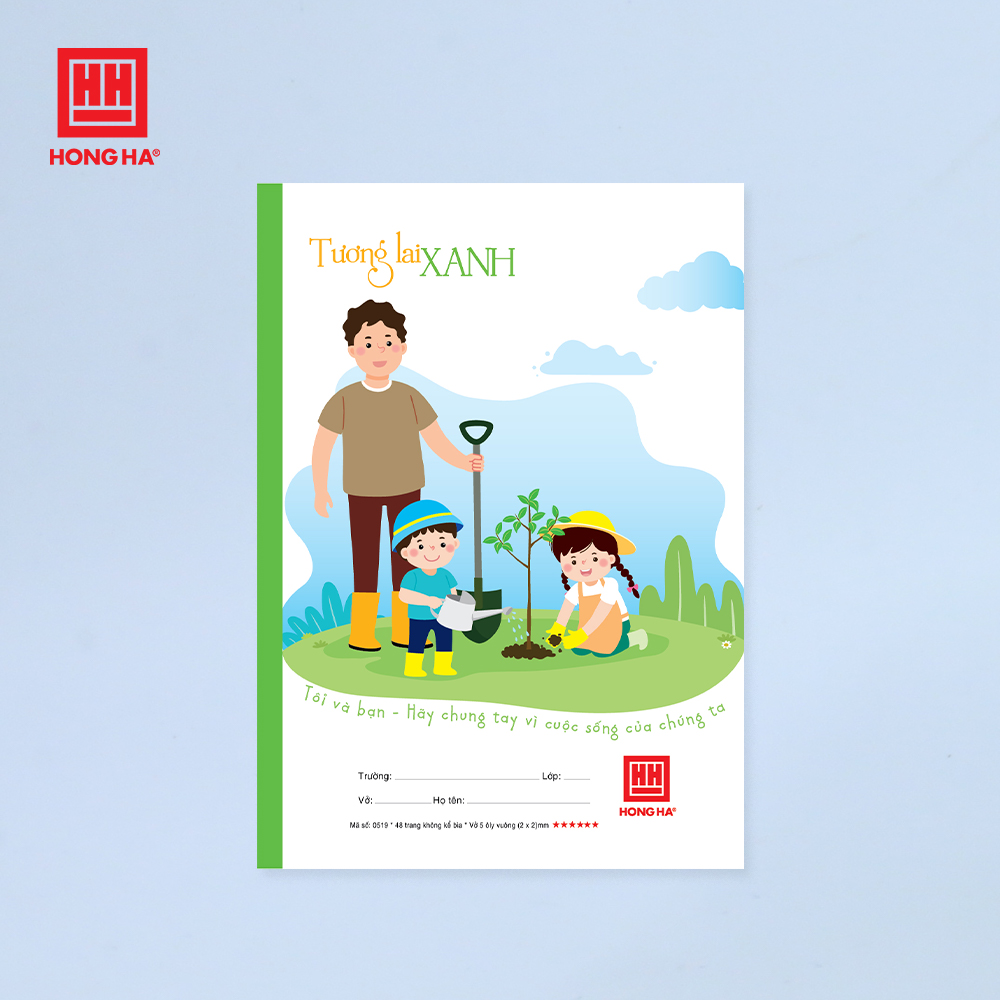 Vở 5 Ô ly 48 trang Hồng Hà School Tương Lai Xanh - 0519 phù hợp cho học sinh tiểu học, tập viết chữ.