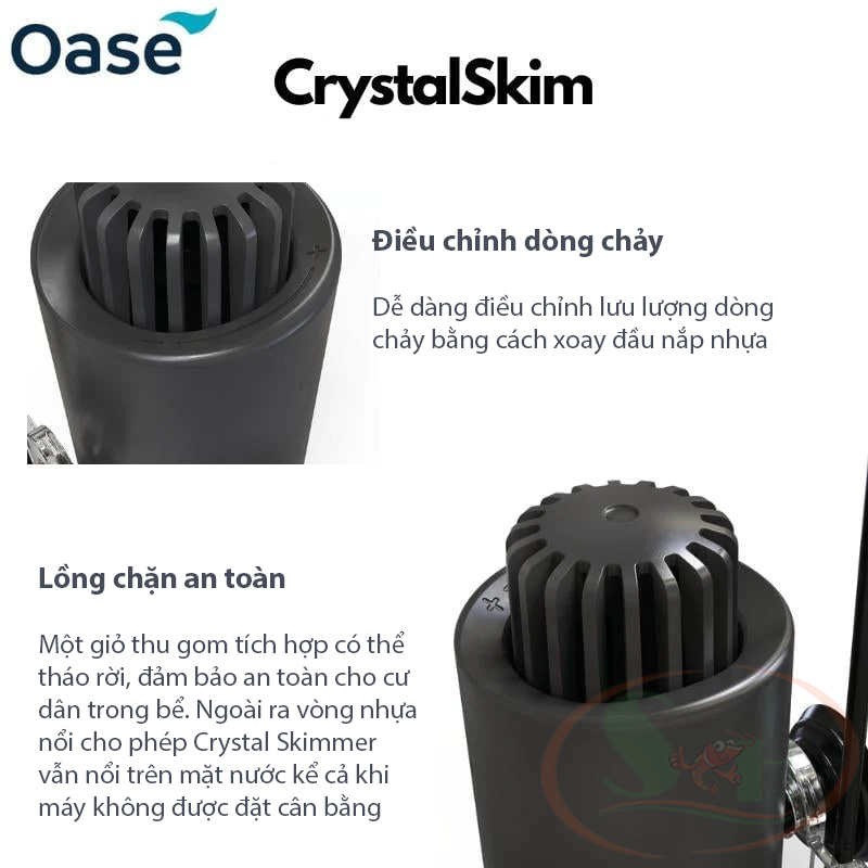 Mua tại TiktokLọc váng OASE Crystal Skimmer 350, 600 là lọc váng cao cấp từ Đức, dùng để loại bỏ lớp váng dầu một cách hiệu quả (được hình thành từ lớp vi sinh vật, dầu, bụ theo thời gian), giúp bề mặt nước luôn trong vắt, tăng khả năng thâm nhập của ánh sáng vào bể. OASE Crystal Skimmer với thiết kế nhỏ gọn, tích hợp tính năng tăng giảm lưu lượng giúp điều chỉnh thích hợp theo mục đích sử dụng riêng. Ngoài ra, khe xả đáy bên dưới máy giúp cho bể không còn vùng nước tù đọng (thường là điểm chết). OASE Crystal Skimmer dùng được cho cả hồ nước ngọt, nước biển. LƯU Ý VỀ LỌC VÁNG OASE CRYSTAL SKIMMER 350, 600: