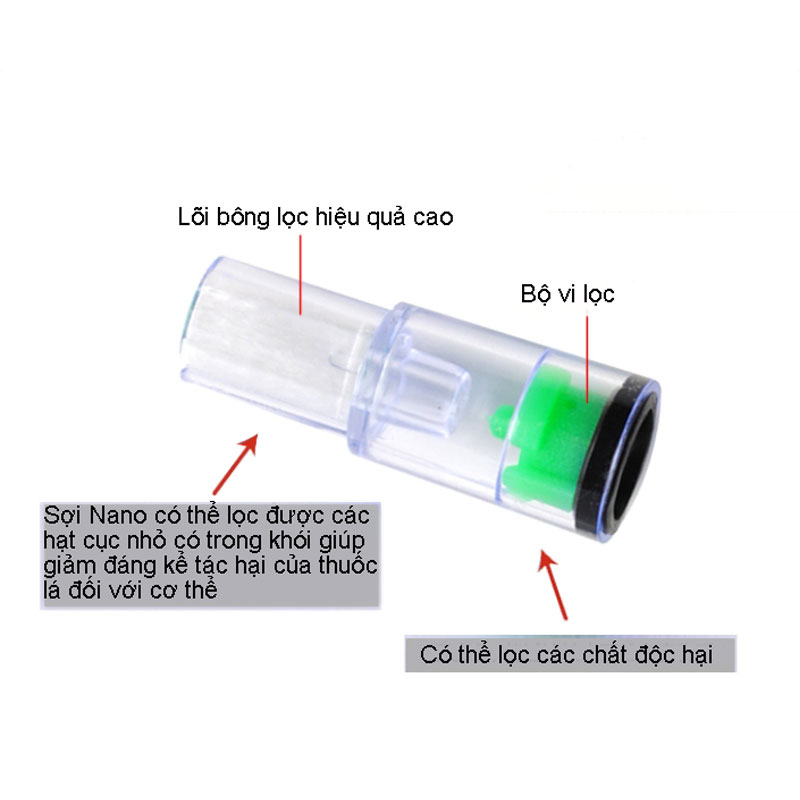 – Chức năng: Loc khói độc giúp thanh lọc khói thuốc, giảm độc tố vào cơ thể, dùng để thay thế cho các loại tẩu lọc bông