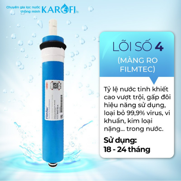 Lõi lọc số 4 Karofi hay còn gọi là màng lọc RO. Đây là bộ phận quan trọng nhất của chiếc lõi lọc nước Karofi được ví như quả thận của con người.