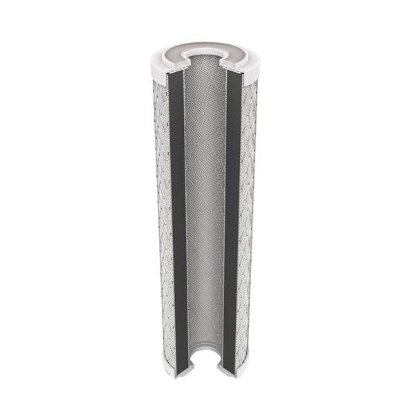 - Than hoạt tính gáo dừa tự nhiên được nung với áp suất cao 1100 PSI tạo ra các hạt than mesopores với bề mặt mao quản chỉ từ 2-50 nm, liên kết với các sợi Polyetylen được ép thành khối Post Carbon giúp cho dòng chảy của nước được phân bổ đồng đều tại mọi điểm, bề mặt than tiếp xúc với nước tối đa nhất.