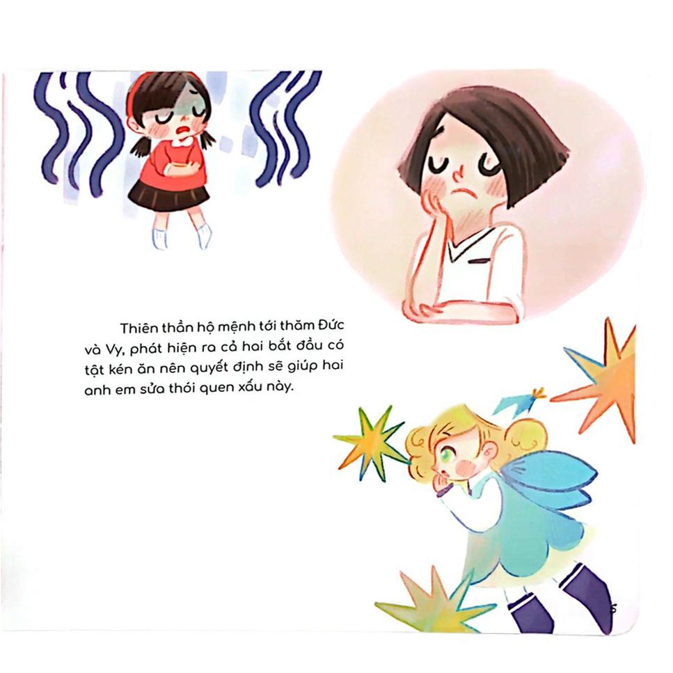 Bước vào mỗi cuốn sách là bước vào một cuộc phiêu lưu kì thú với sự giúp sức của thiên thần “thói quen tốt”, các bạn nhỏ sẽ theo chân nhân vật Đức và Vy tìm tòi, chinh phục những thử thách về lối sống lành mạnh như đi lại đúng tư thế, ngồi đúng tư thế, không nhìn sát vào màn hình ti vi, không đọc sách trong bóng tối…